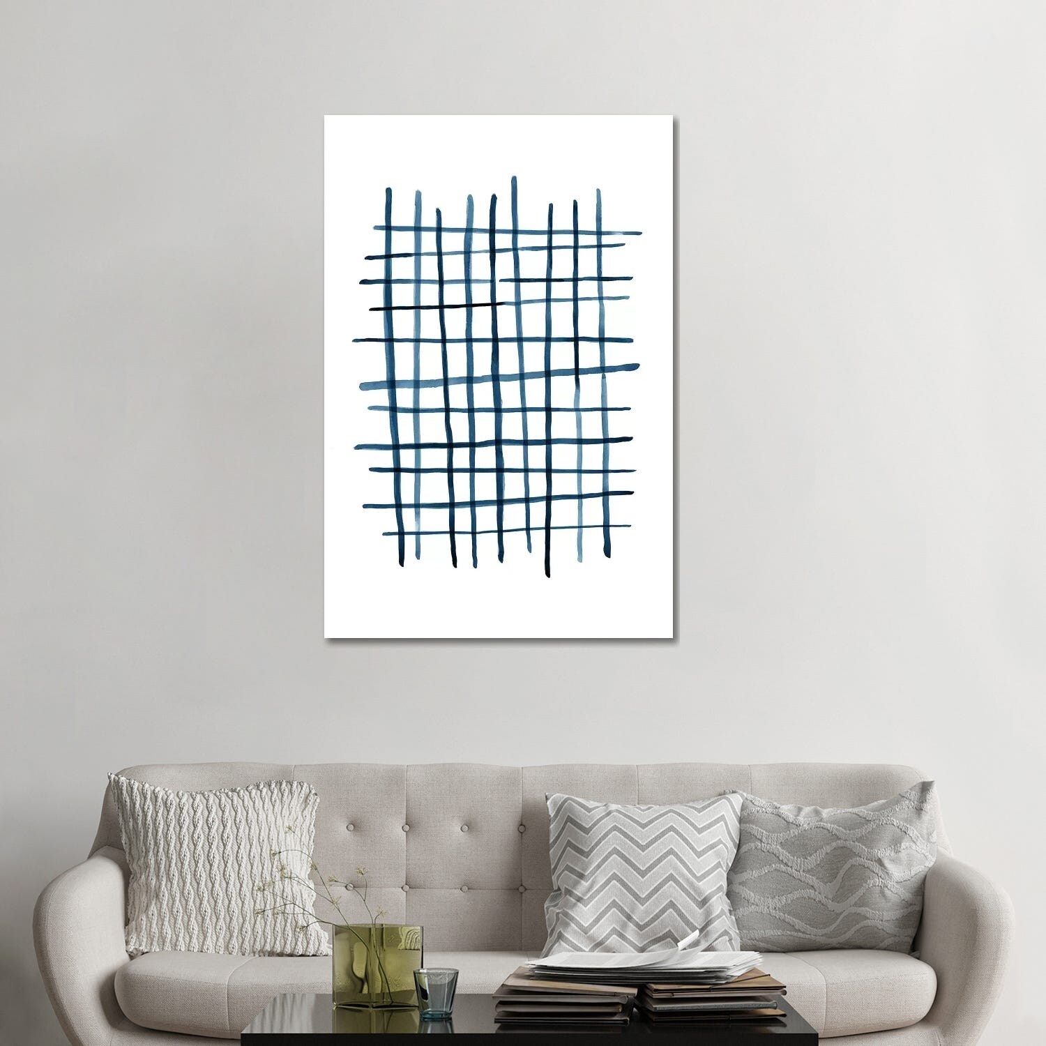 iCanvas "Watercolor Grid Navy Blue" by Nouveau Prints Canvas Print