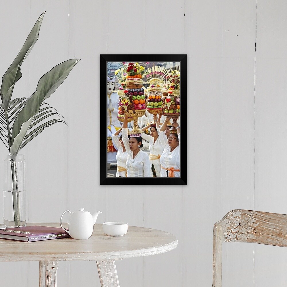 "Women carrying Temple offerings, Ubud Bali" Black Framed Print