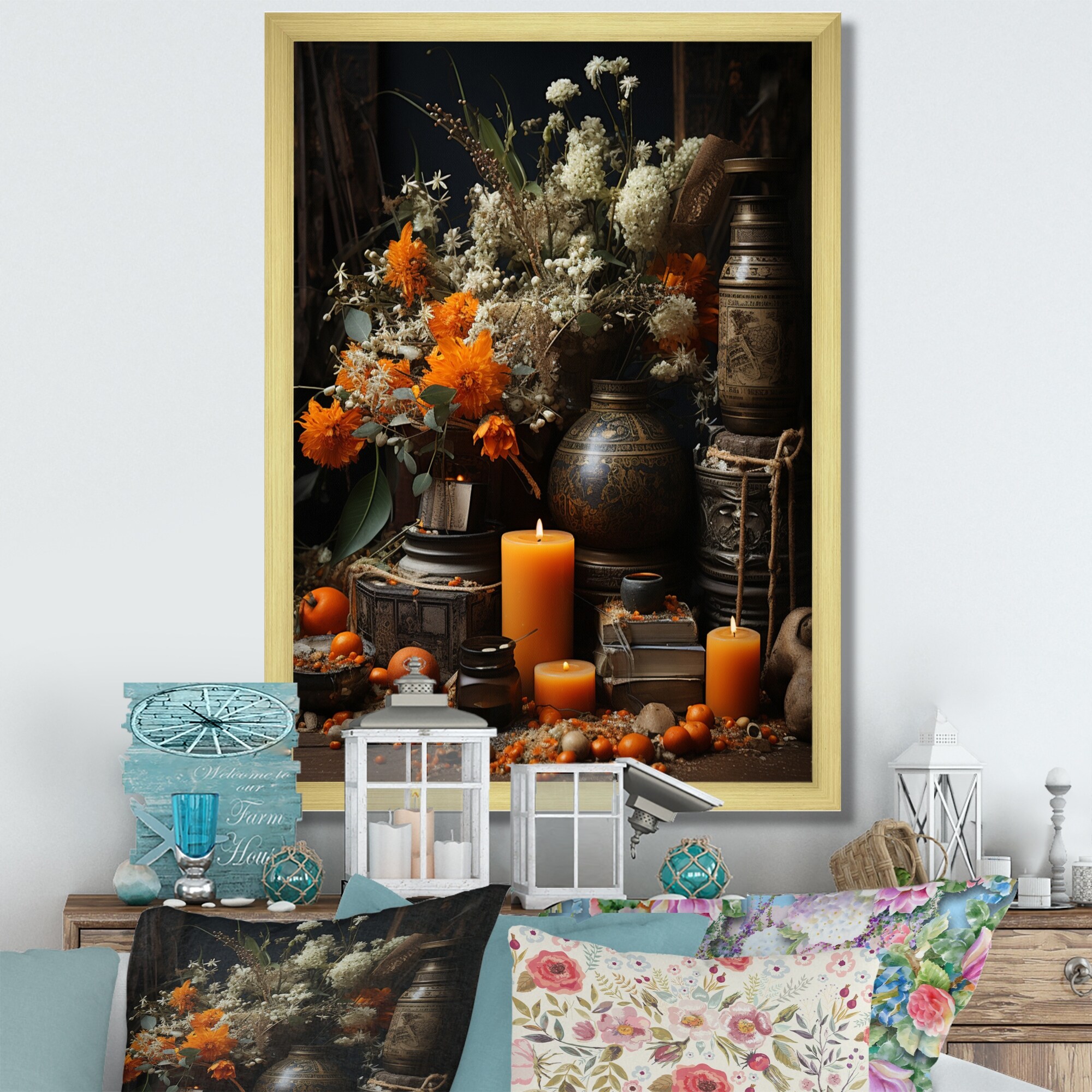 Designart "Gold Mexican Art Marigold Offerings" Mexican Art Wall Art Prints