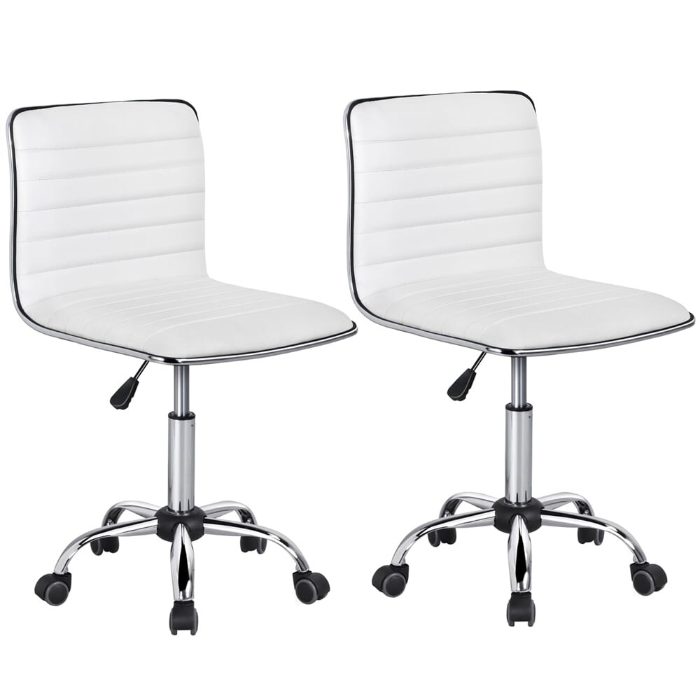 Modern Adjustable Armless Faux Leather Swivel Office Chair, Set of 2, Black
