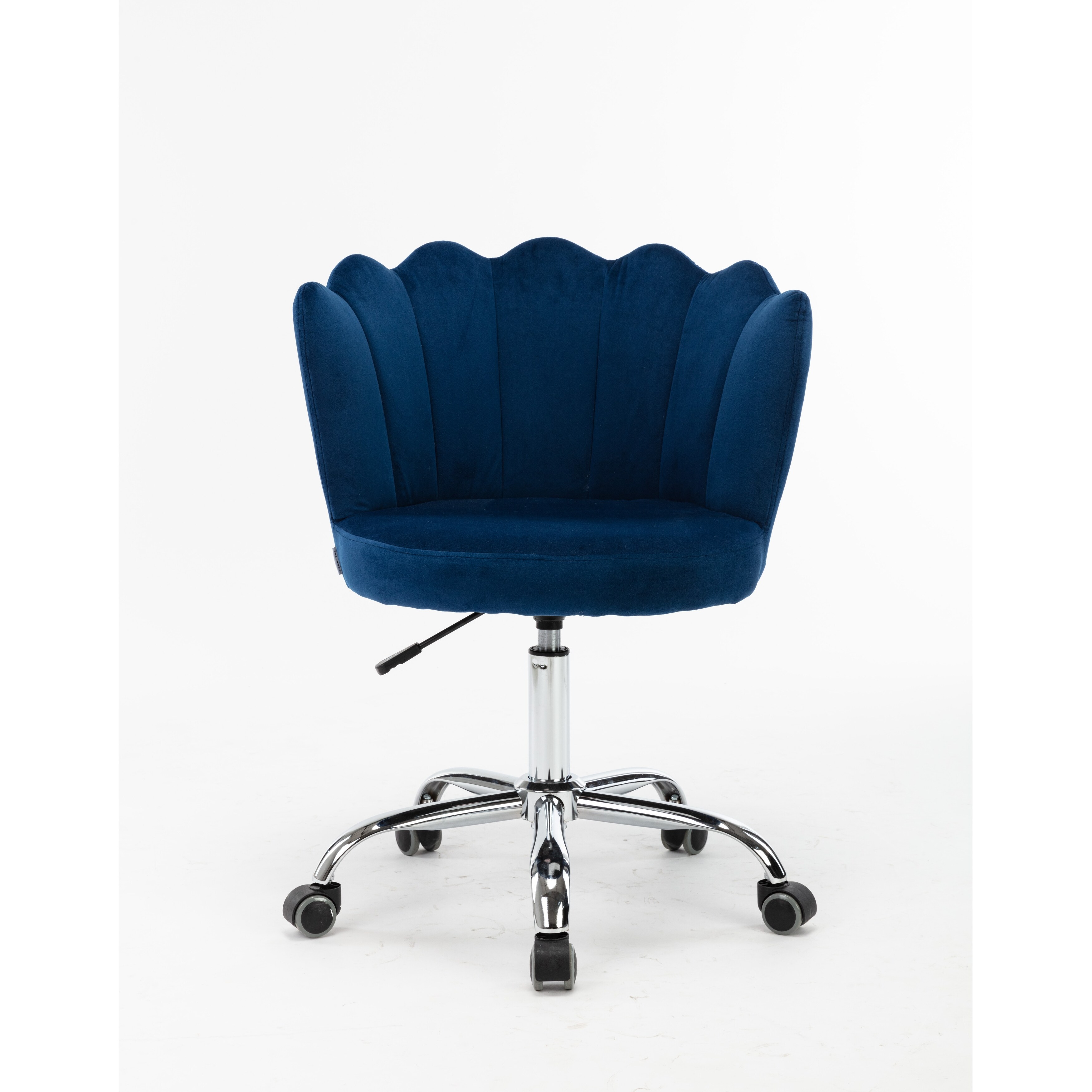 Muata Armless Swivel Casters Office Chair, Twilight Blue Velvet&Chrome