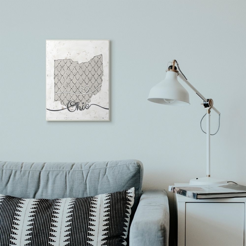 Stupell Industries Ohio Patterned Grey US State Design Wood Wall Art, Proudly Made in USA