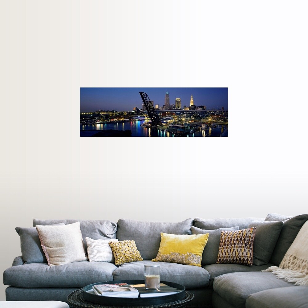 Easy Art Prints Panoramic Images's 'Buildings lit up at night, Cleveland, Ohio, USA' Premium Canvas Art
