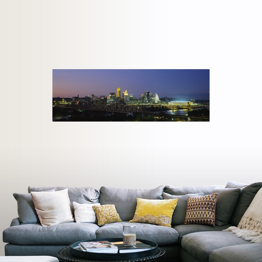 Easy Art Prints Panoramic Image 'Cincinnati skyline, Ohio and Ohio River as seen from Covington, KY' Canvas Art