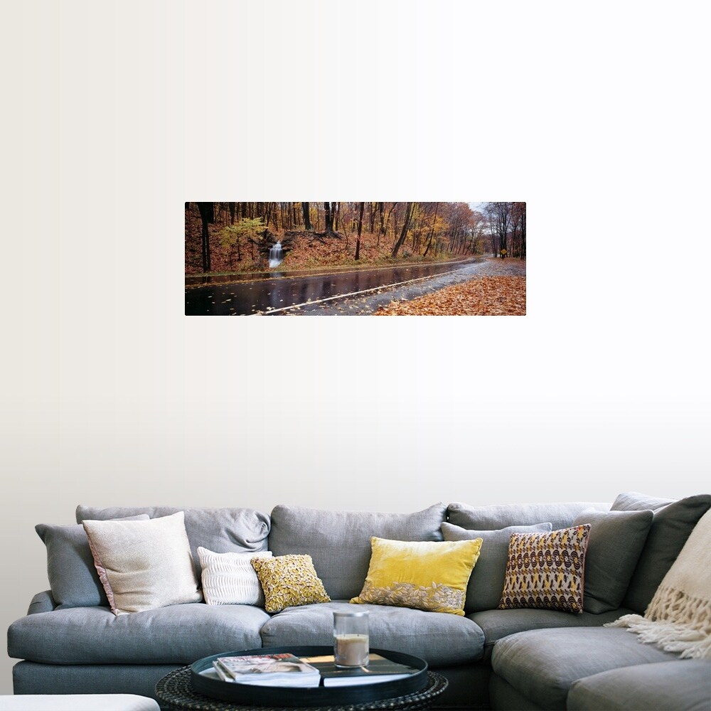Easy Art Prints Panoramic Images's 'Rainy Road in Autumn, Euclid Creek, Parkway, Ohio, USA' Premium Canvas Art