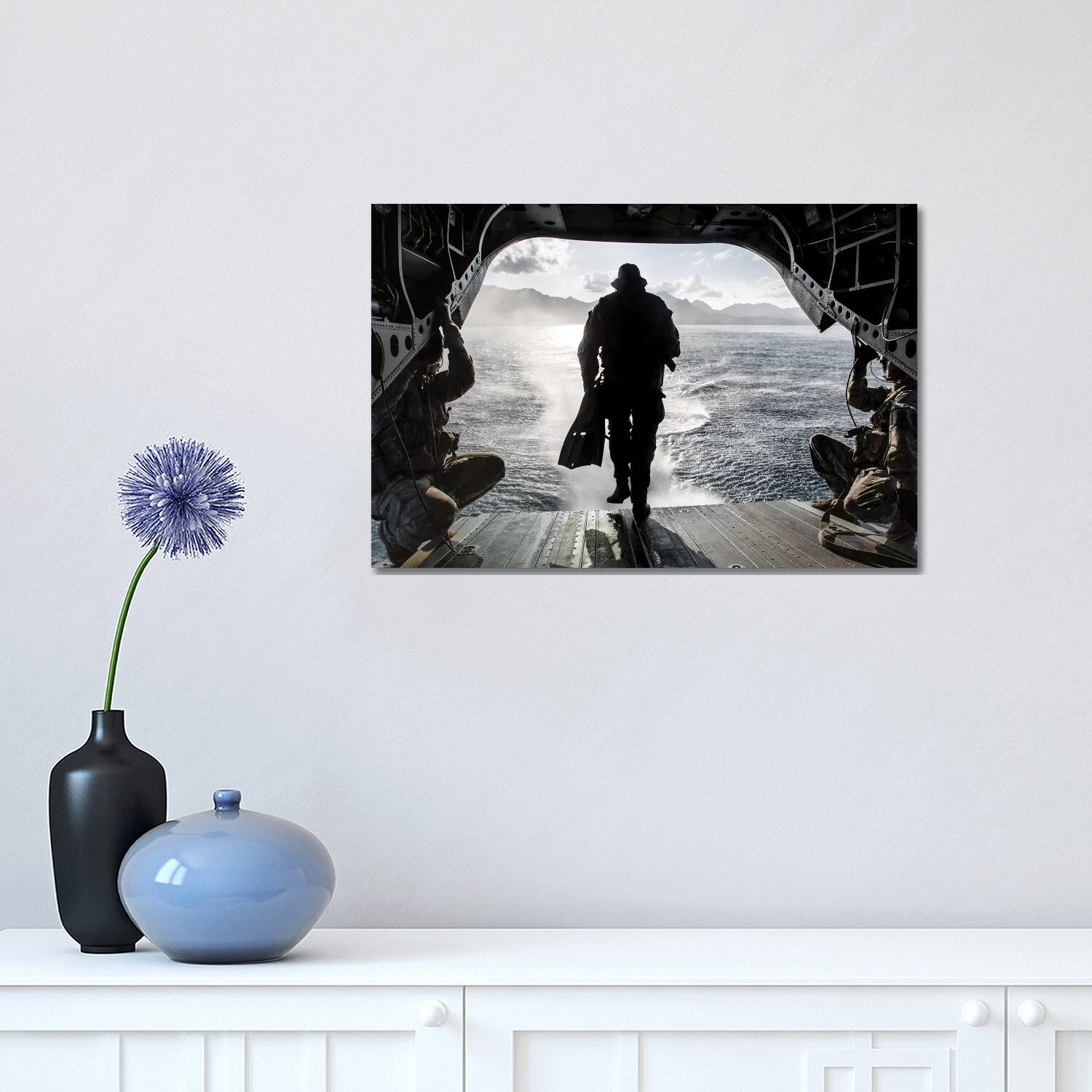 iCanvas "A Soldier Conducts A Combat Dive Mission Off the Back of a CH-47 Chinook" by Stocktrek Images Canvas Print