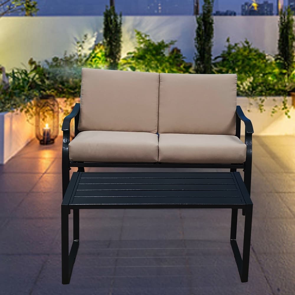 3PCS Patio Furniture Set Rattan Outdoor Sofa and Side Table