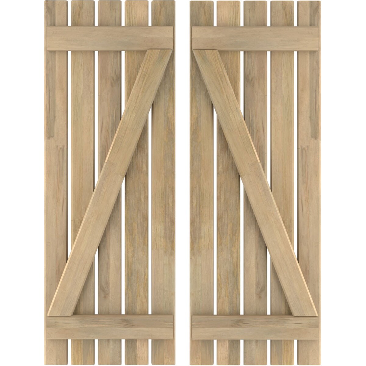 Rustic Four Board Joined Board-n-Batten Faux Wood Shutters w/Z-Board (Per Pair), Primed Tan