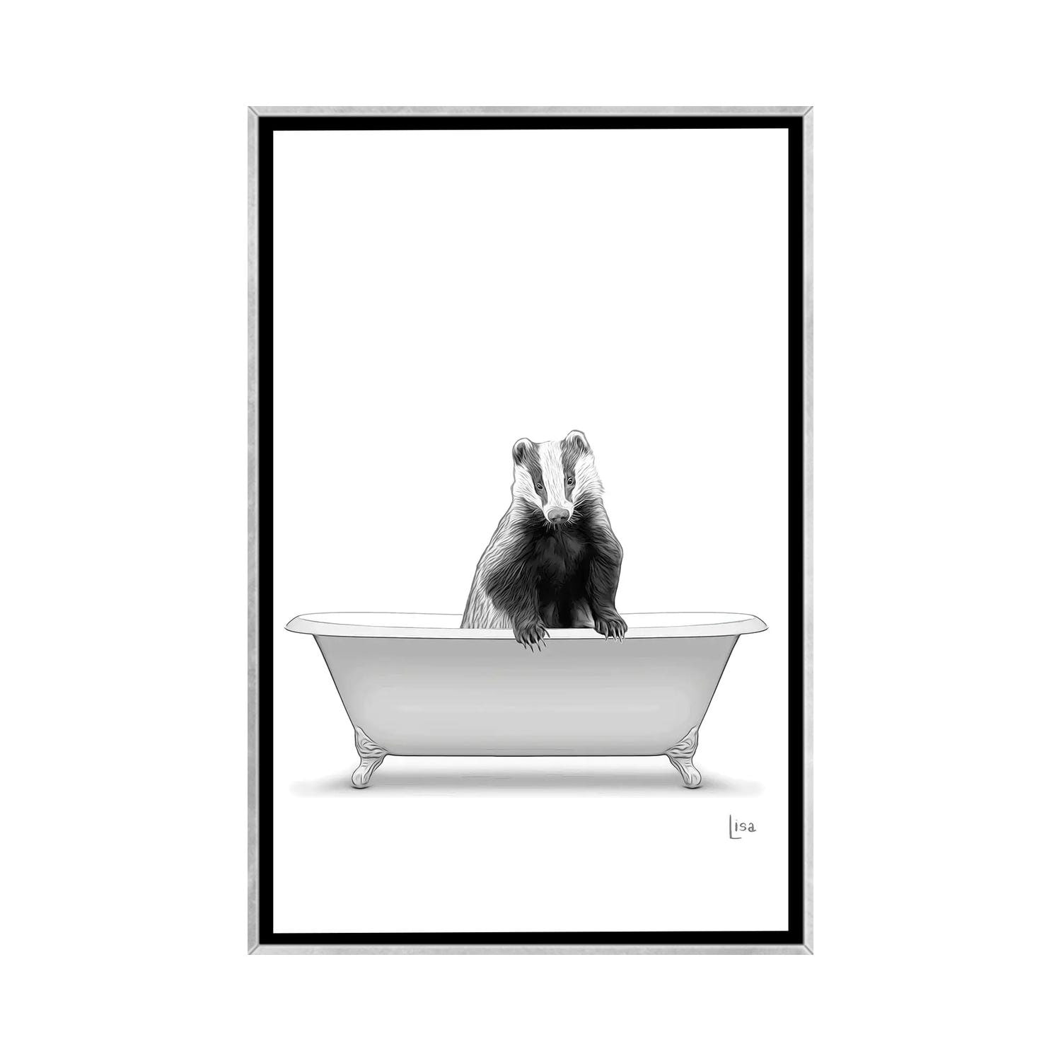 iCanvas "Badger In Bw Bathtub" by Printable Lisa's Pets Framed