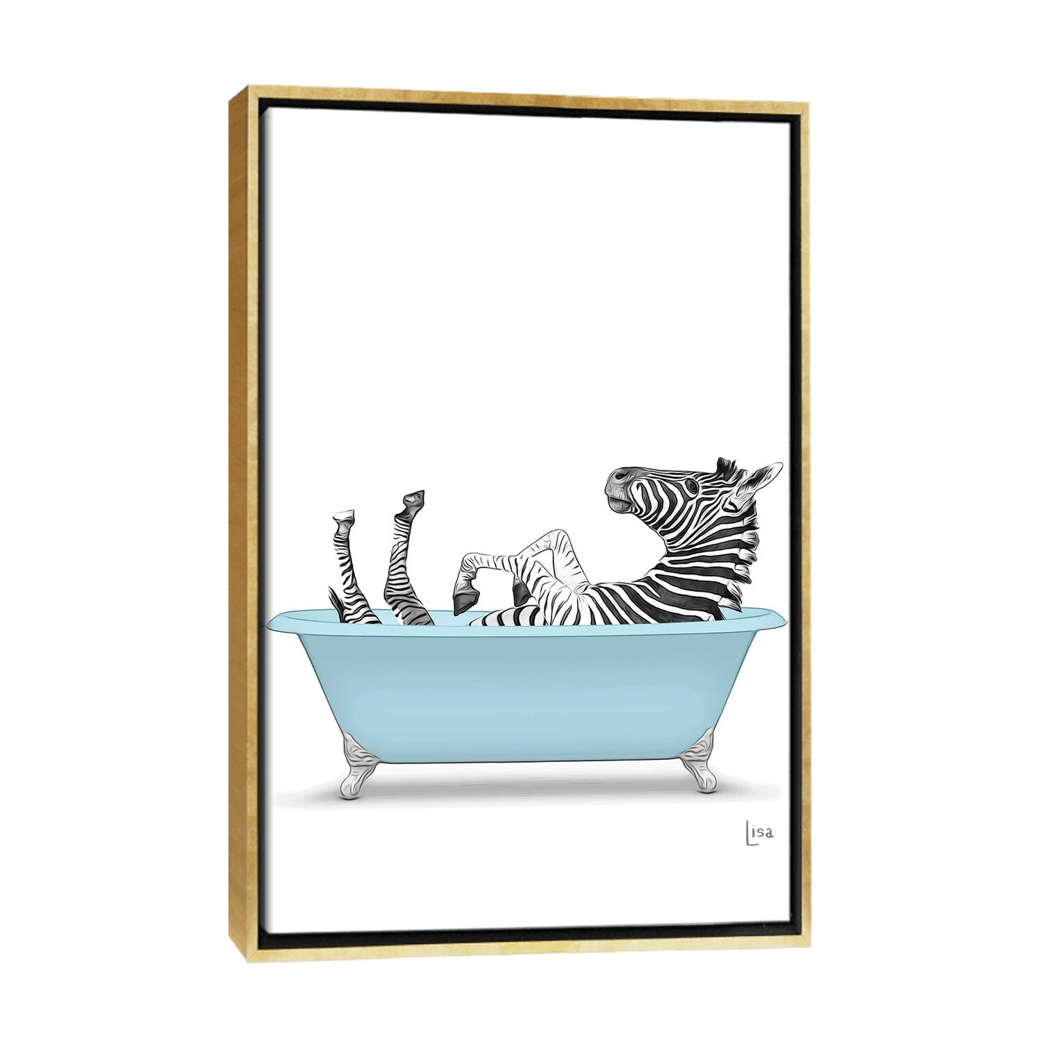 iCanvas "Zebra In the Blue Bath" by Printable Lisa's Pets Framed