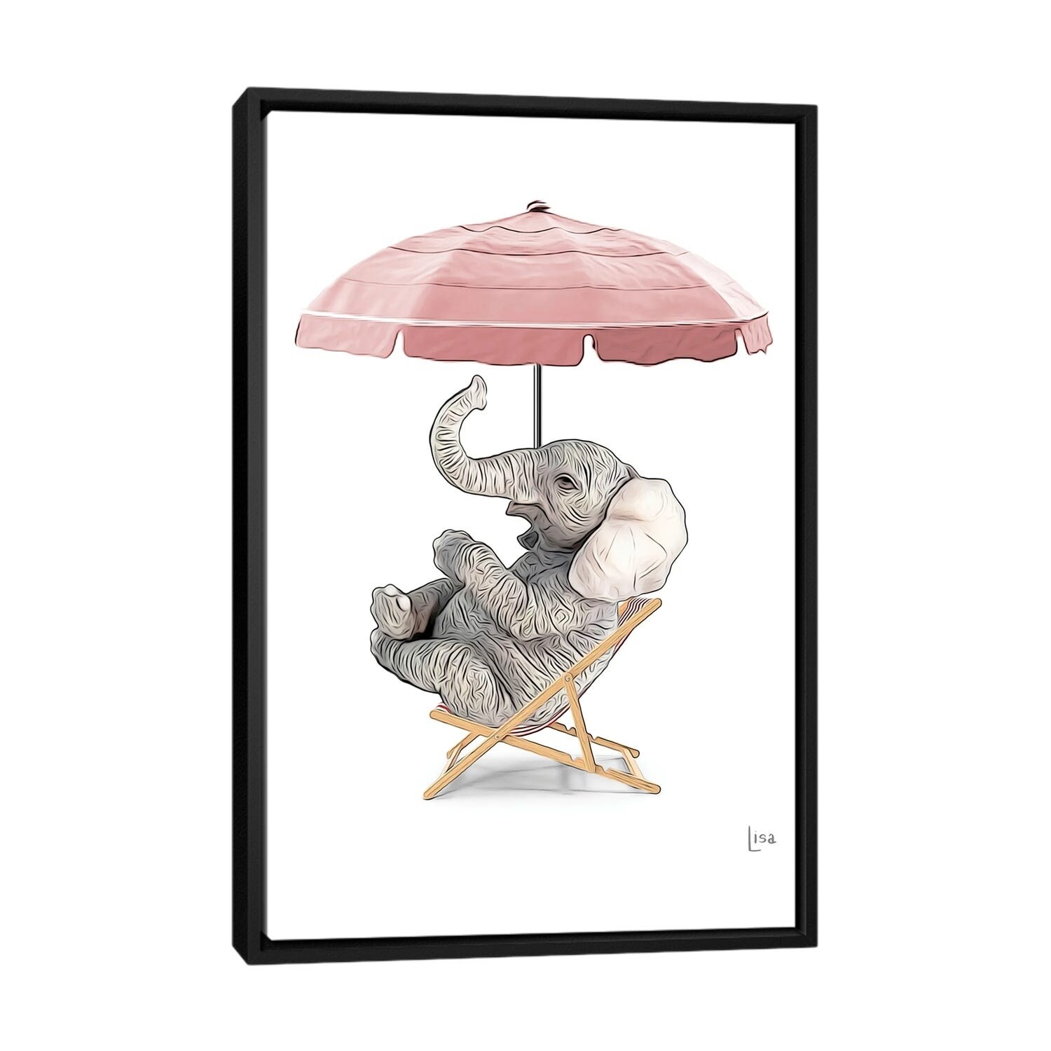 iCanvas "Elephant At the Beach on Deck Chair And Umbrella" by Printable Lisa's Pets Framed