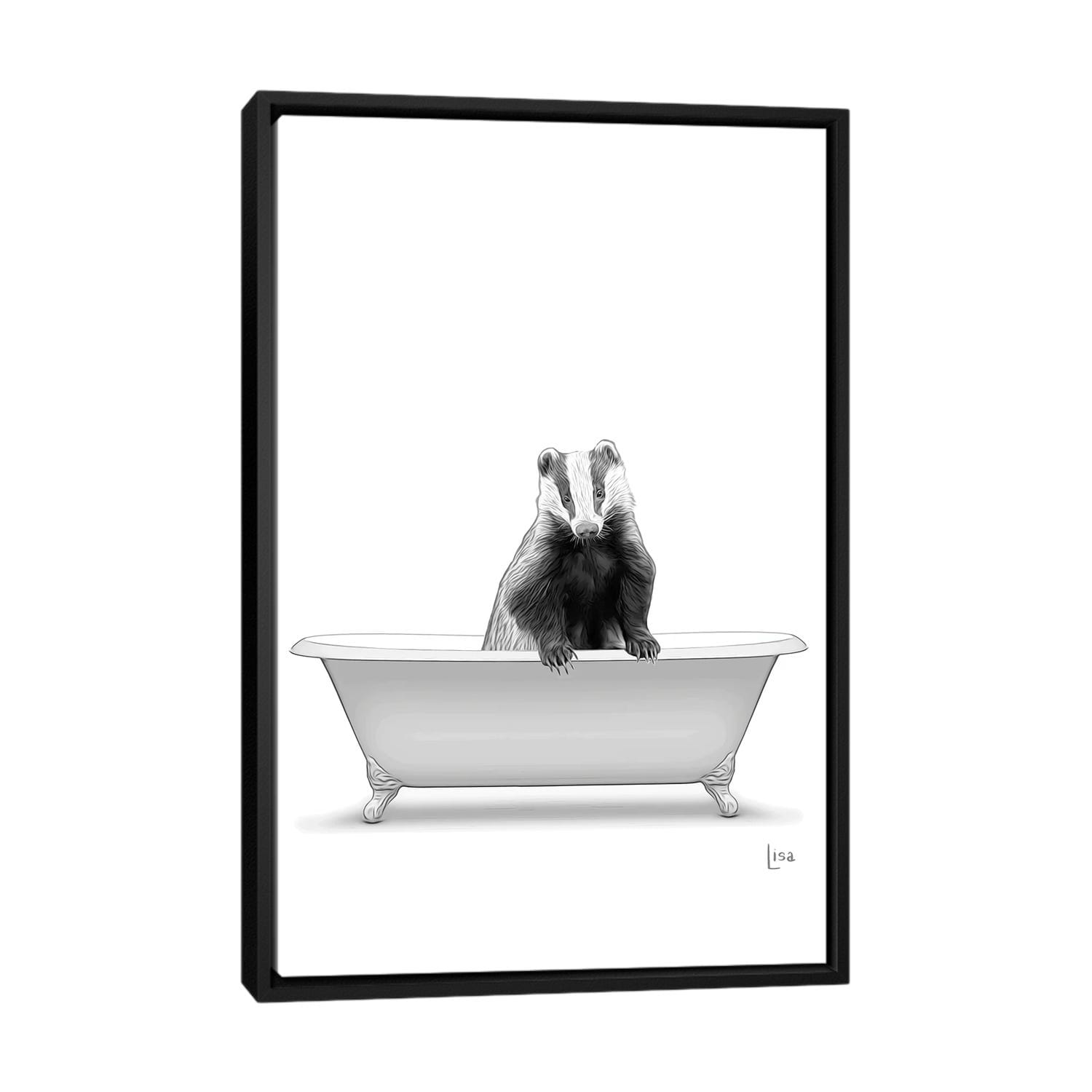iCanvas "Badger In Bw Bathtub" by Printable Lisa's Pets Framed Canvas Print