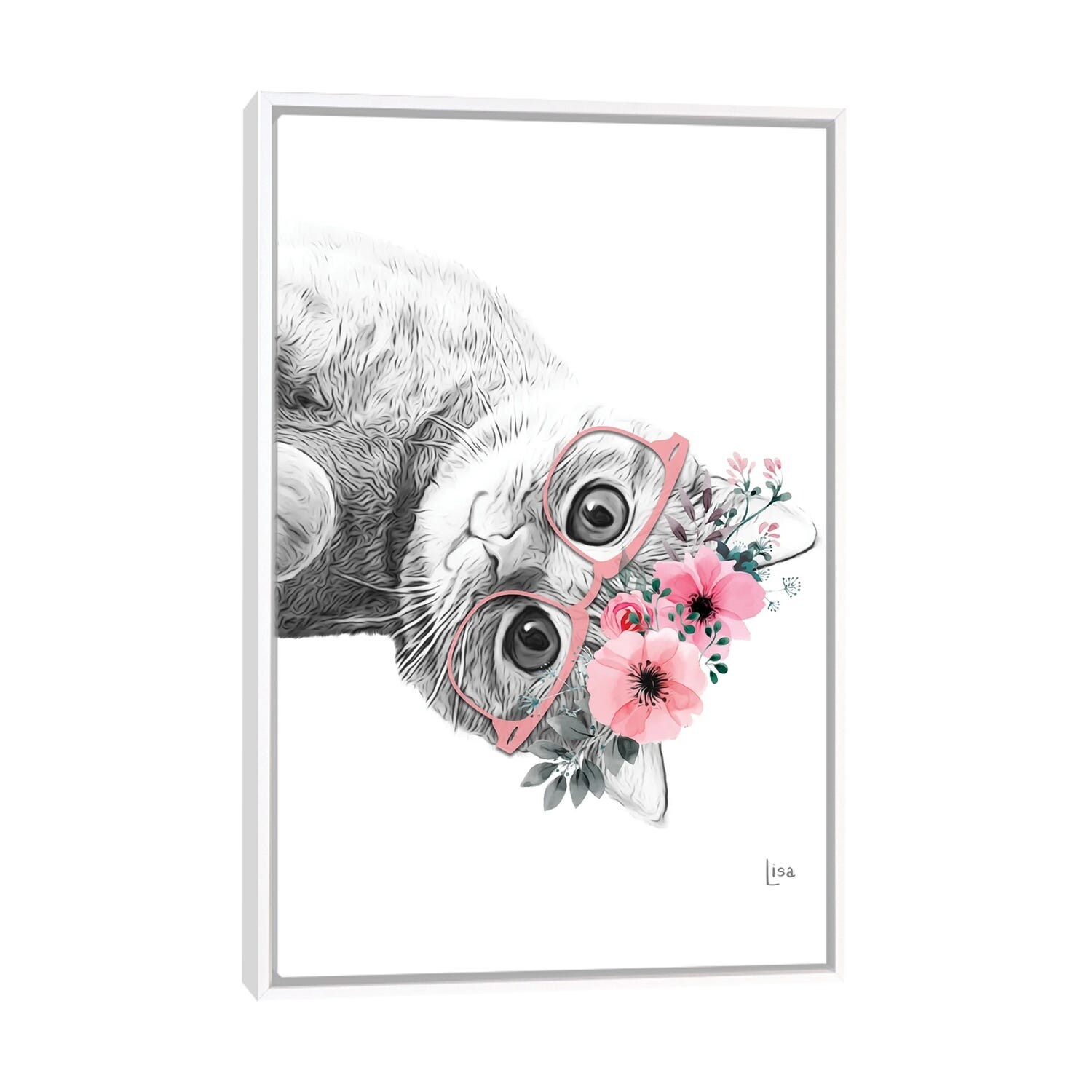 iCanvas "Little Cat With Pink Glasses" by Printable Lisa's Pets Framed