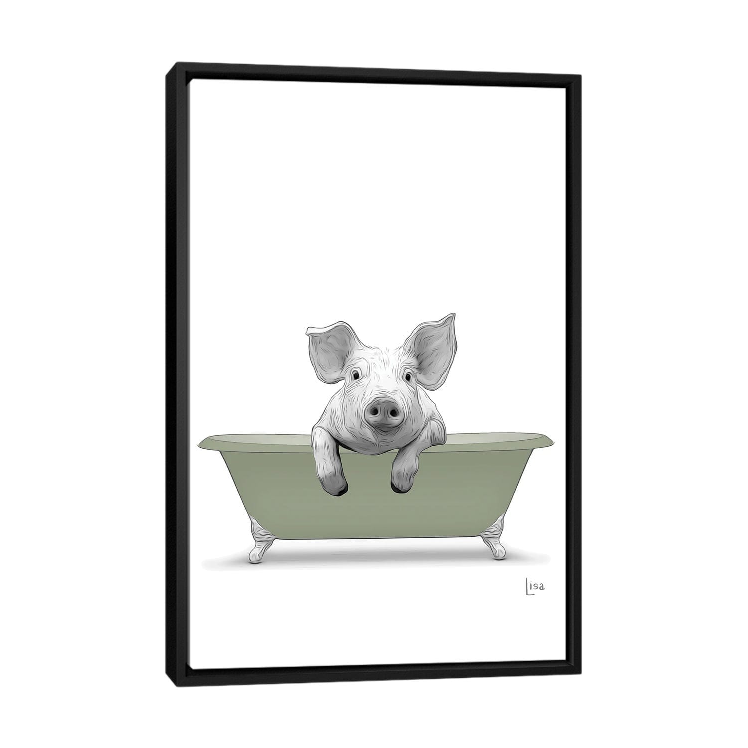 iCanvas "Pig In Green Bathtub" by Printable Lisa's Pets Framed