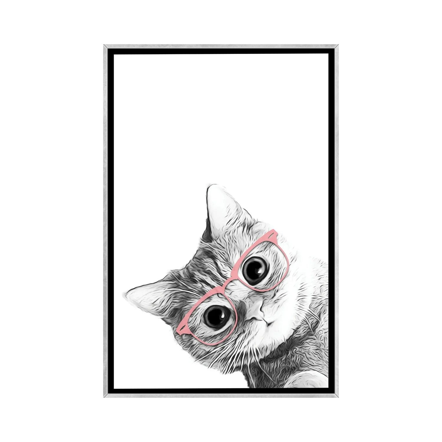 iCanvas "Baby Cat With Pink Glasses" by Printable Lisa's Pets Framed