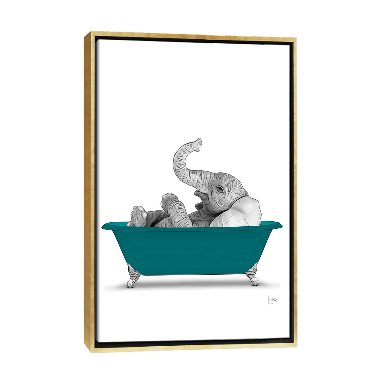 iCanvas "Elephant In Green Bathtub" by Printable Lisa's Pets Framed