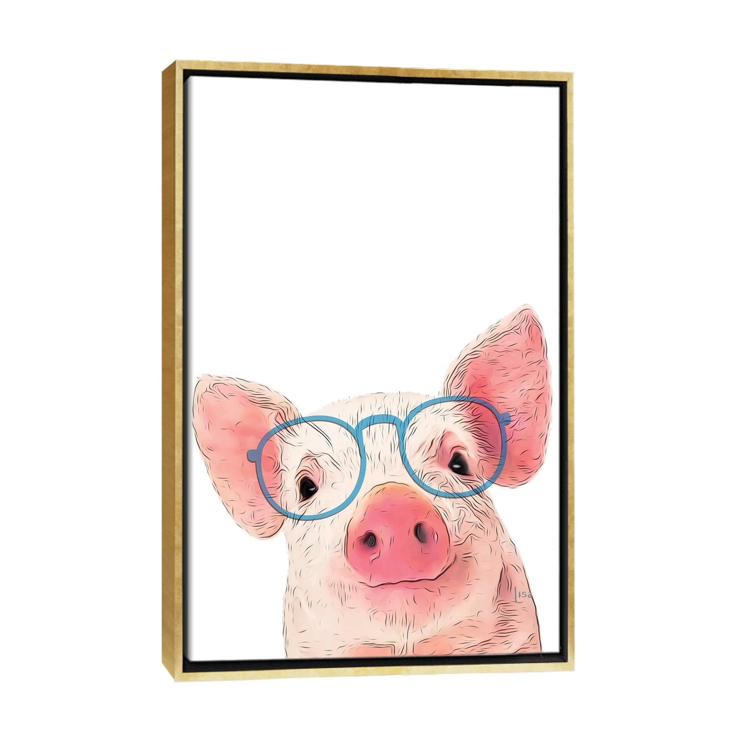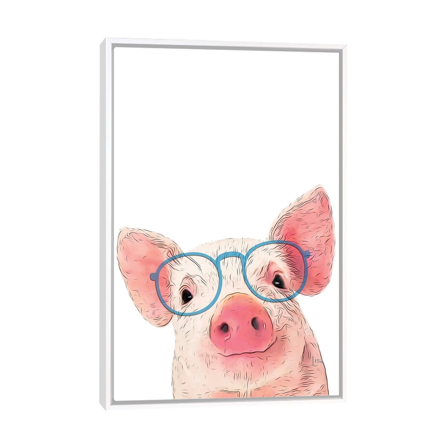 iCanvas "Color Pig With Blue Glasses" by Printable Lisa's Pets Framed