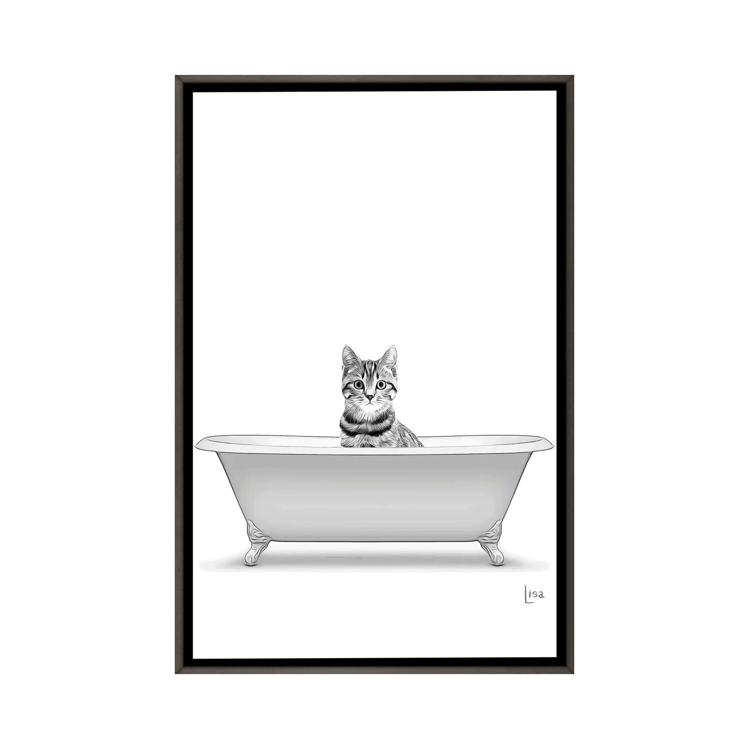 iCanvas "Cat In the Bath Bw" by Printable Lisa's Pets Framed