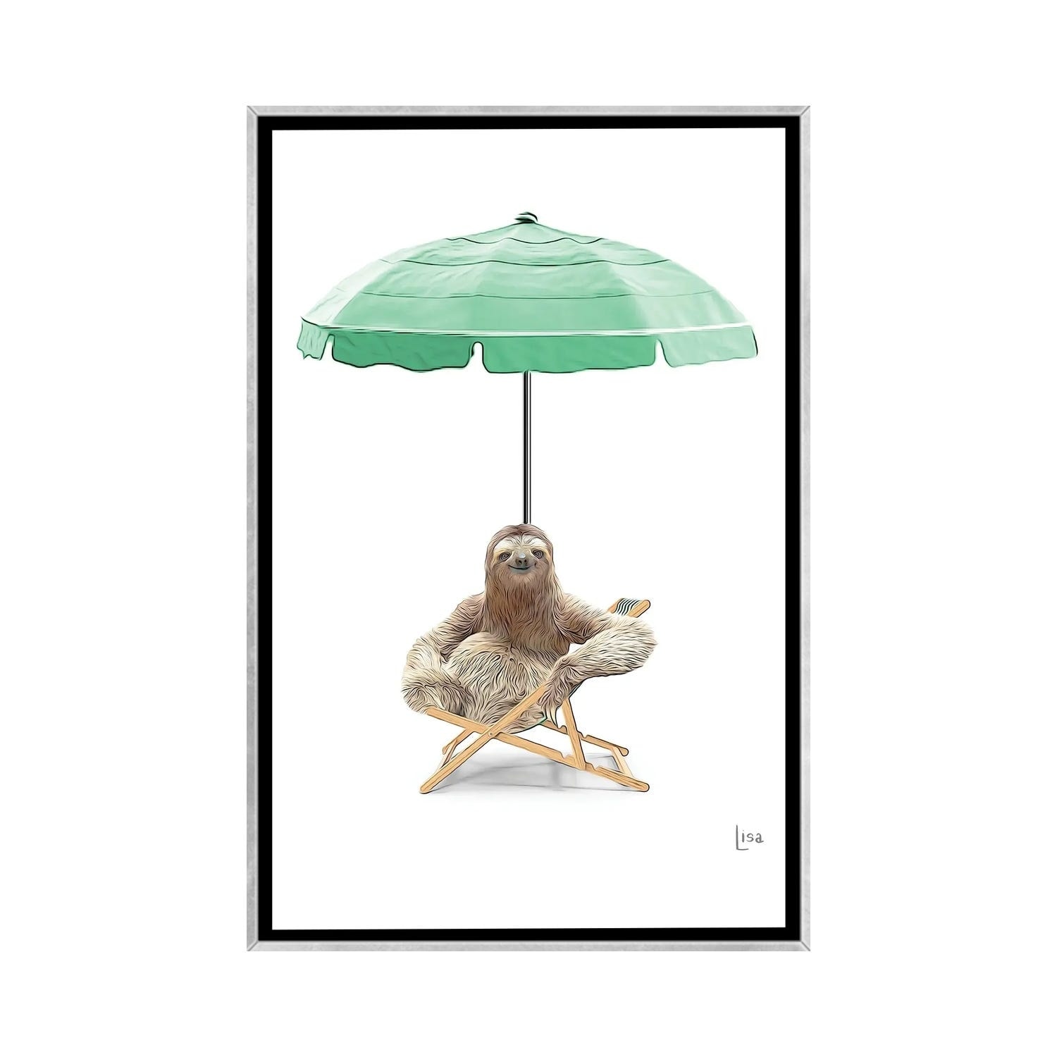 iCanvas "Sloth At the Beach on Deck Chair And Umbrella" by Printable Lisa's Pets Framed
