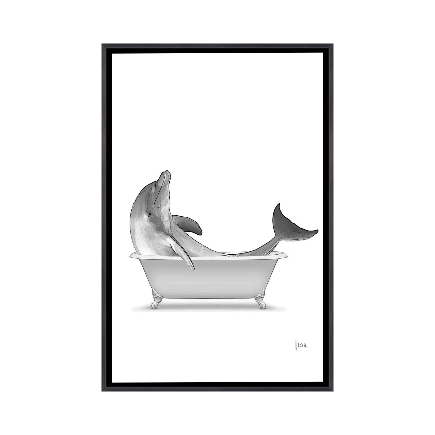 iCanvas "DoIphin In Bathtub Black And White" by Printable Lisa's Pets Framed