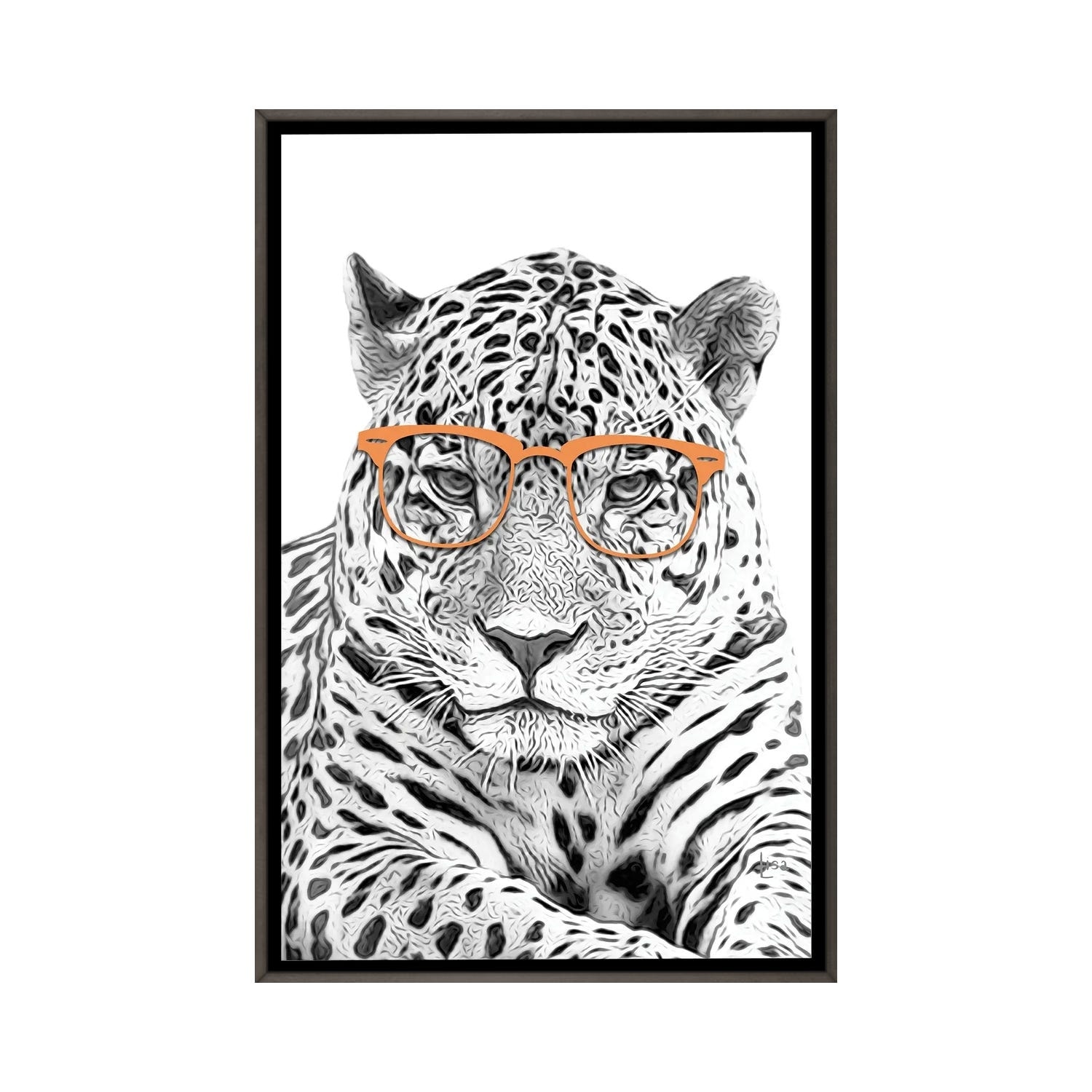 iCanvas "Leopard With Orange Glasses" by Printable Lisa's Pets Framed