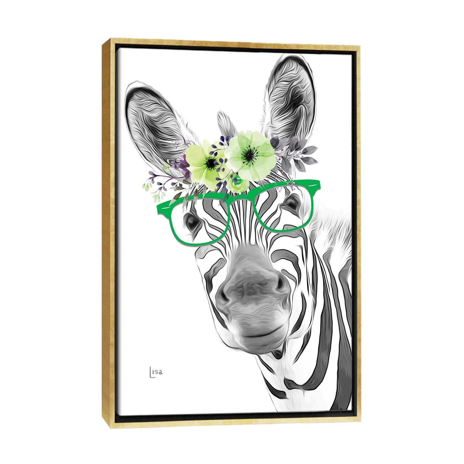 iCanvas "Zebra With Glasses And Green Flower Crown" by Printable Lisa's Pets Framed