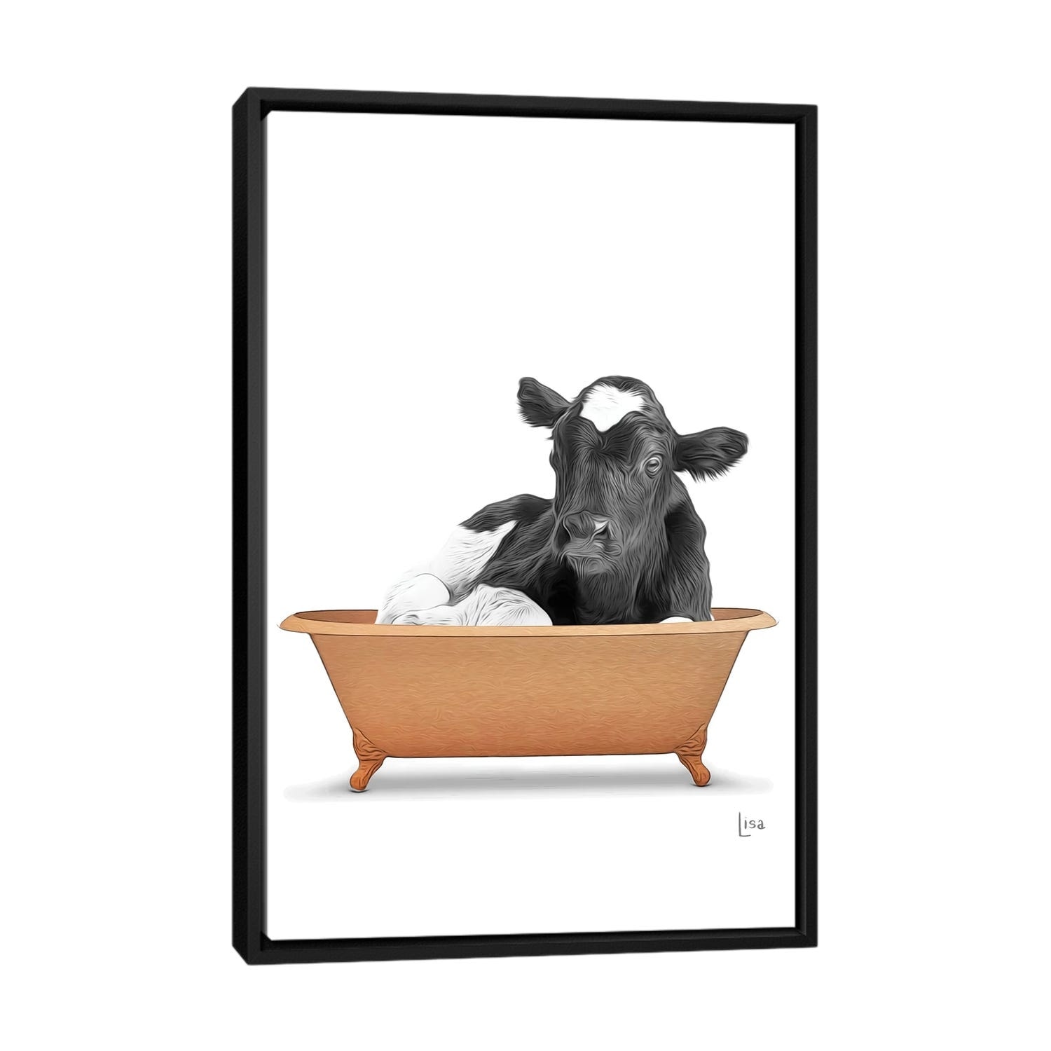 iCanvas "Cow In Bronze Bathtub" by Printable Lisa's Pets Framed