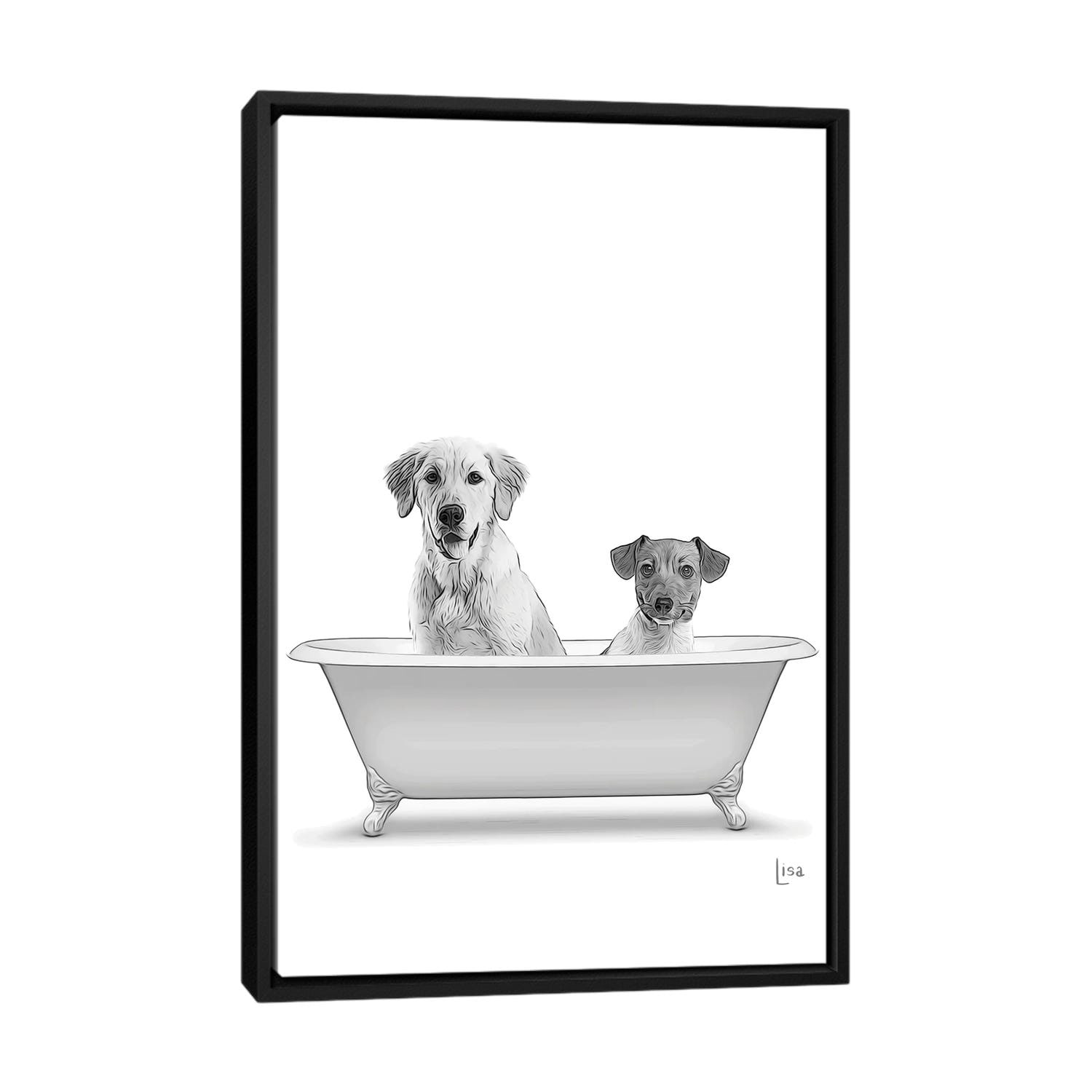 iCanvas "Two Dogs in the Bathtub" by Printable Lisa's Pets Framed Canvas Print