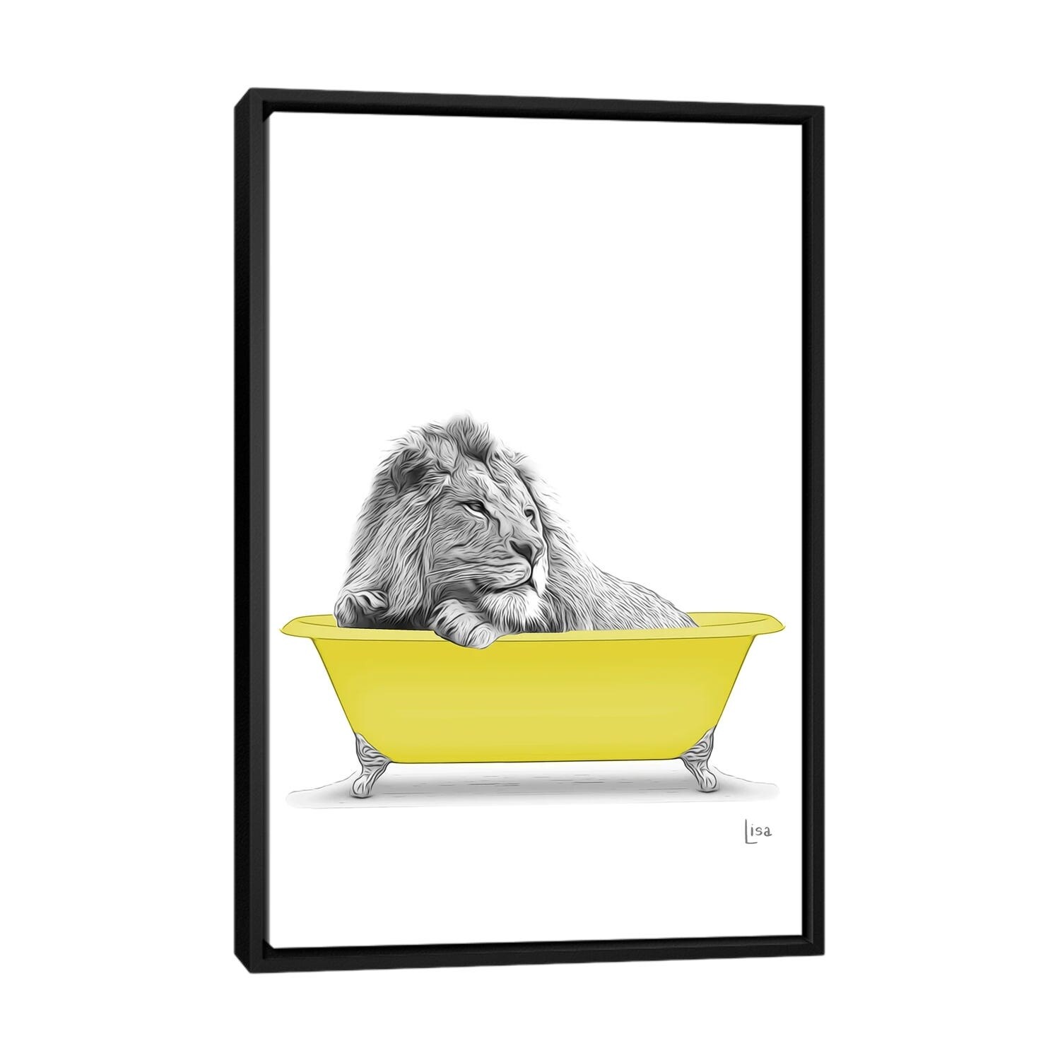 iCanvas "Lion In Yellow Bathtub" by Printable Lisa's Pets Framed