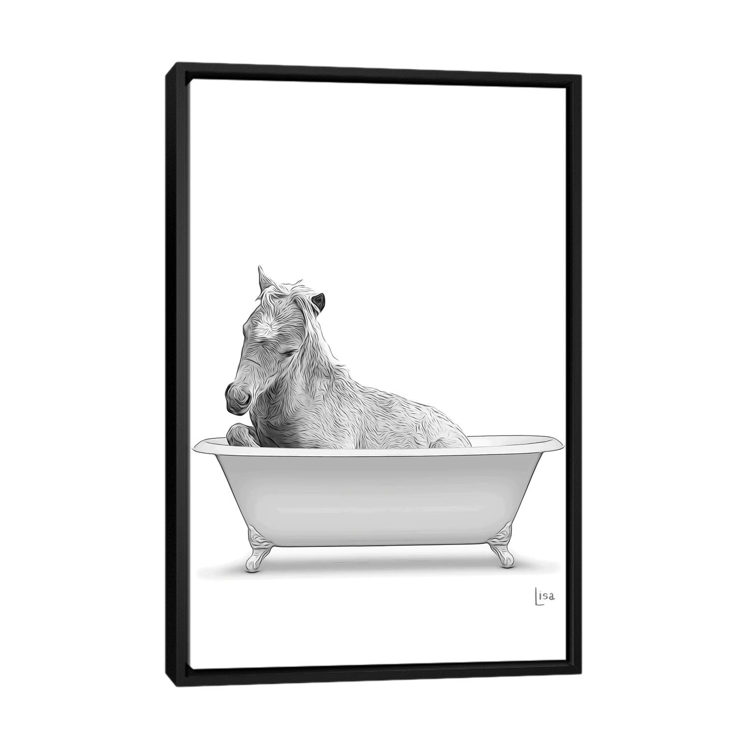 iCanvas "Horse In the Bath Bw" by Printable Lisa's Pets Framed Canvas Print
