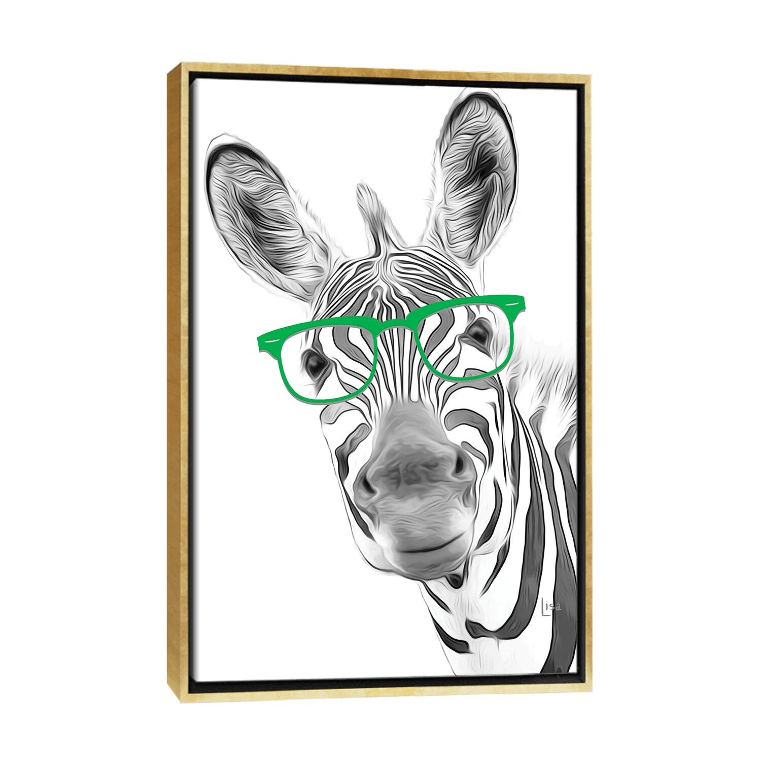 iCanvas "Zebra With Green Glasses" by Printable Lisa's Pets Framed