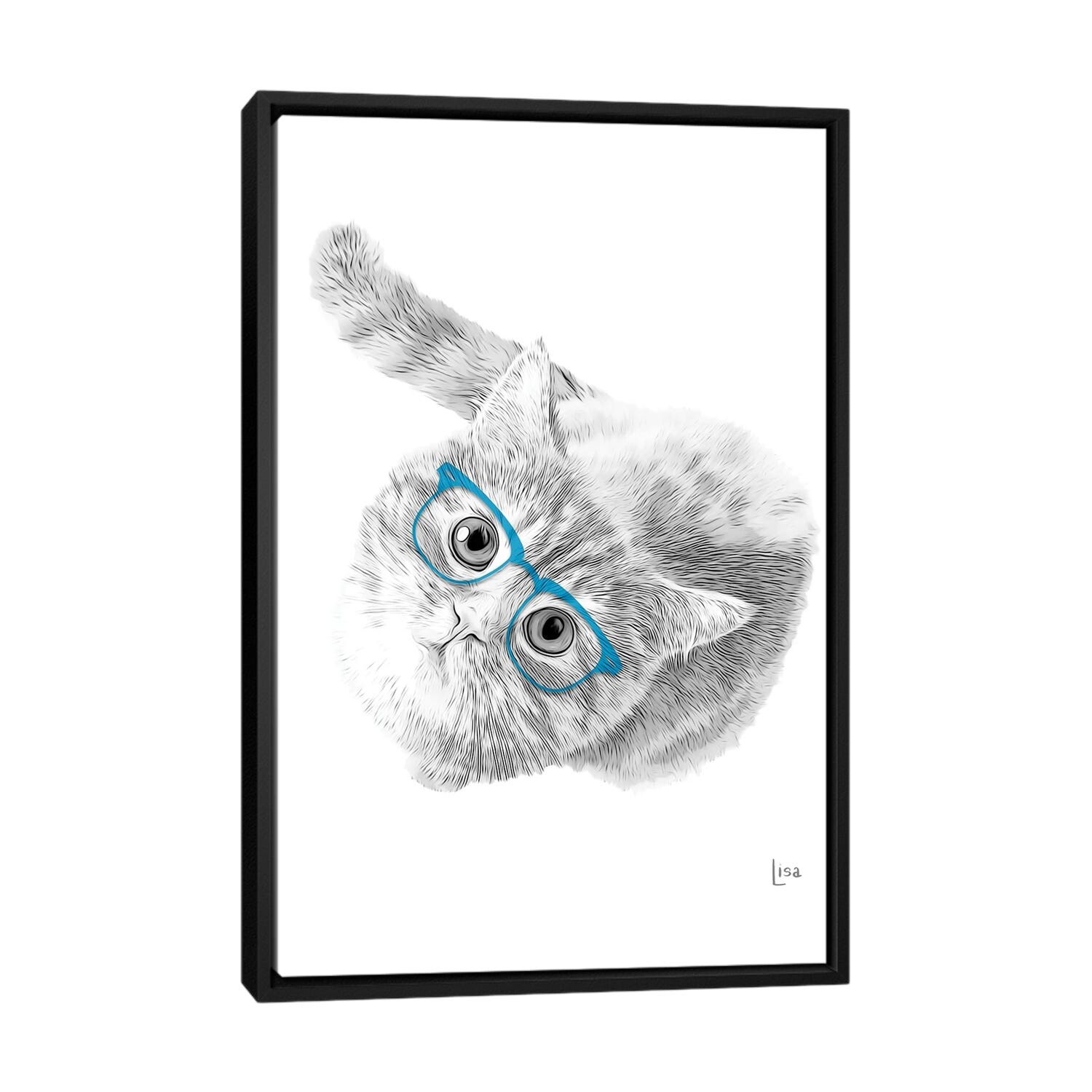 iCanvas "Cat With Blue Glasses" by Printable Lisa's Pets Framed