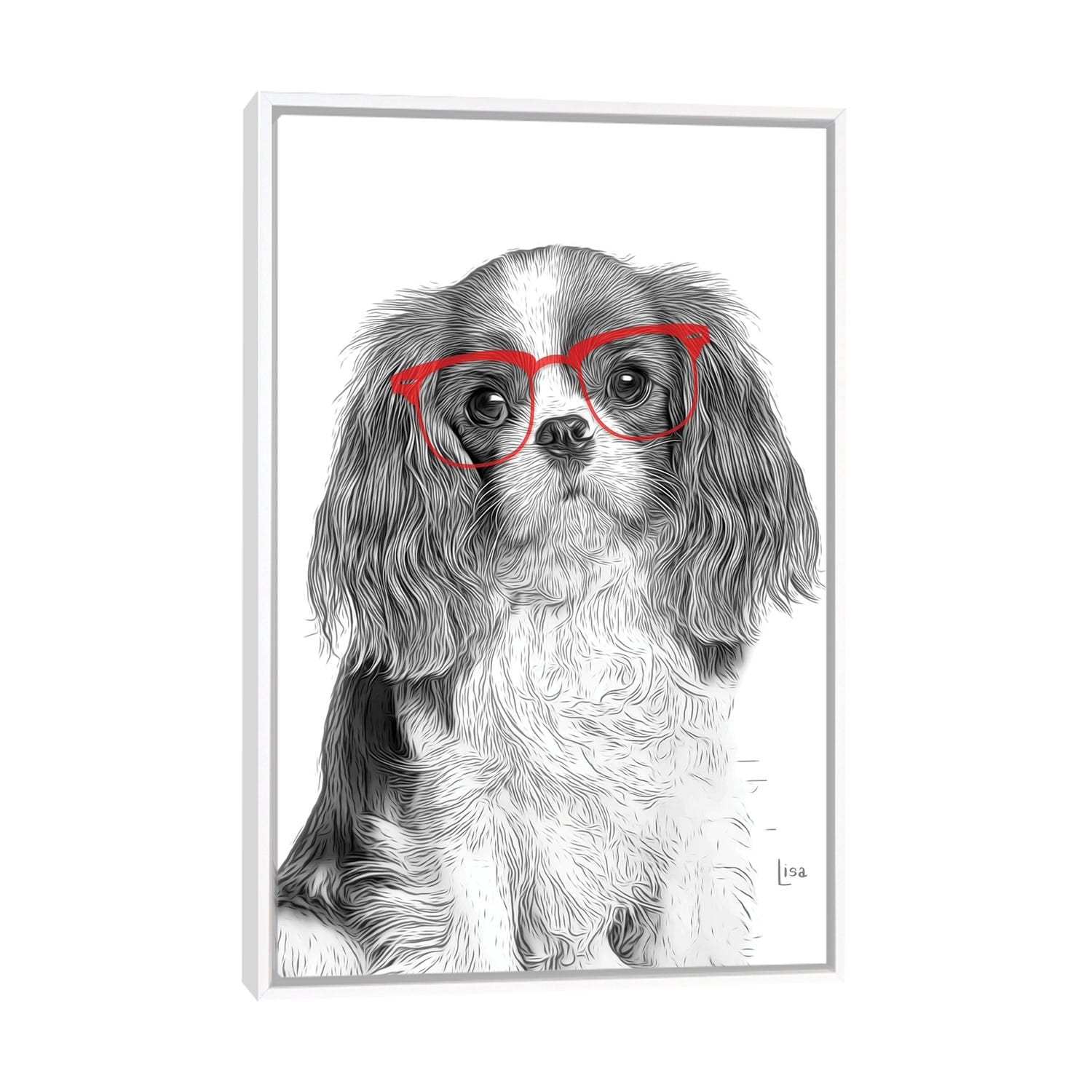 iCanvas "Cavalierking With Red Glasses" by Printable Lisa's Pets Framed