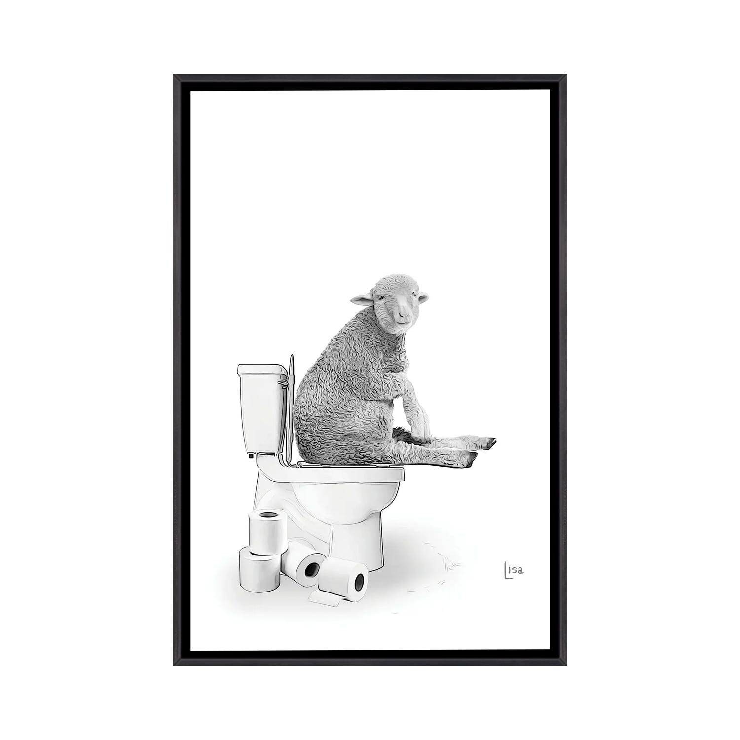 iCanvas "Sheep On the Toilet" by Printable Lisa's Pets Framed