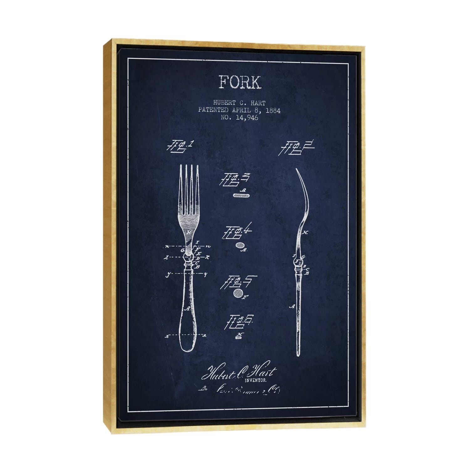 iCanvas "Fork Navy Blue Patent Blueprint" by Aged Pixel Framed Canvas Print