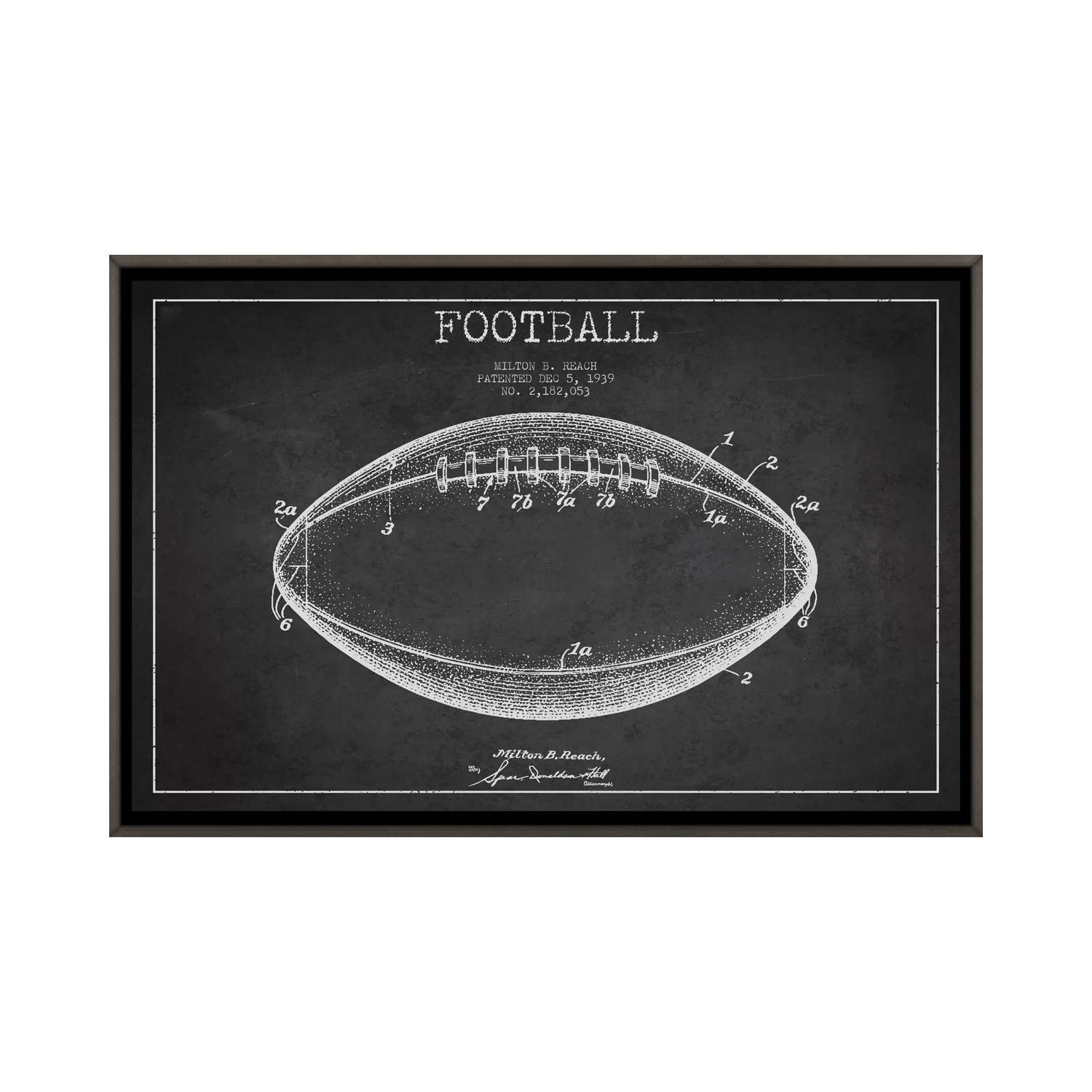 iCanvas "Football Charcoal Patent Blueprint" by Aged Pixel Framed