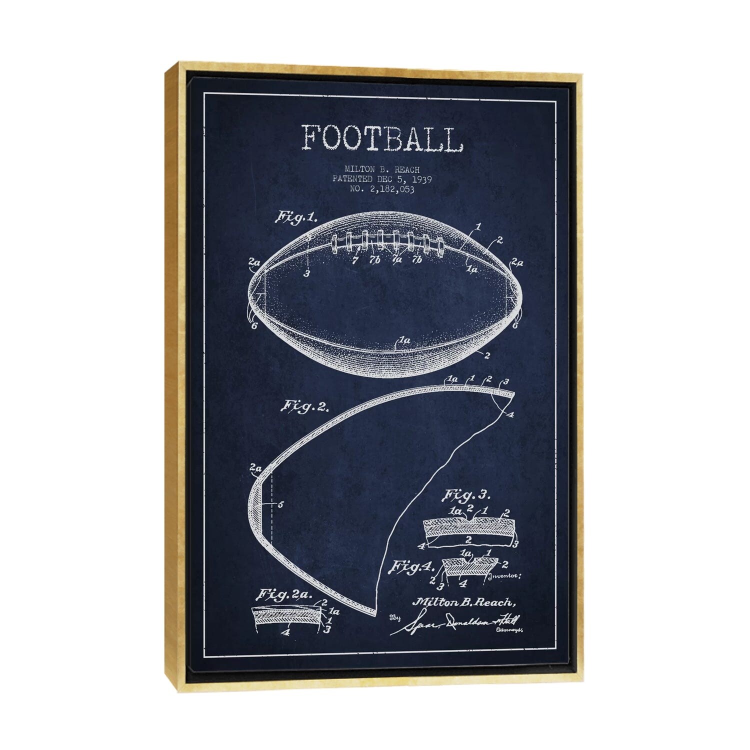 iCanvas "Football Navy Blue Patent Blueprint" by Aged Pixel Framed