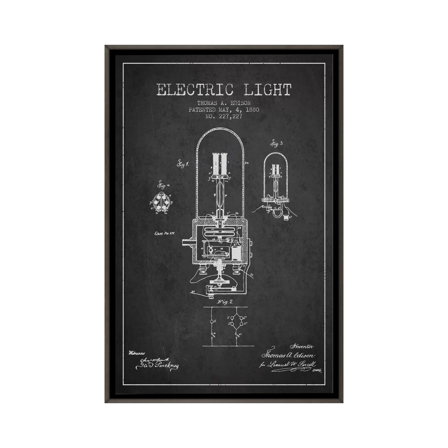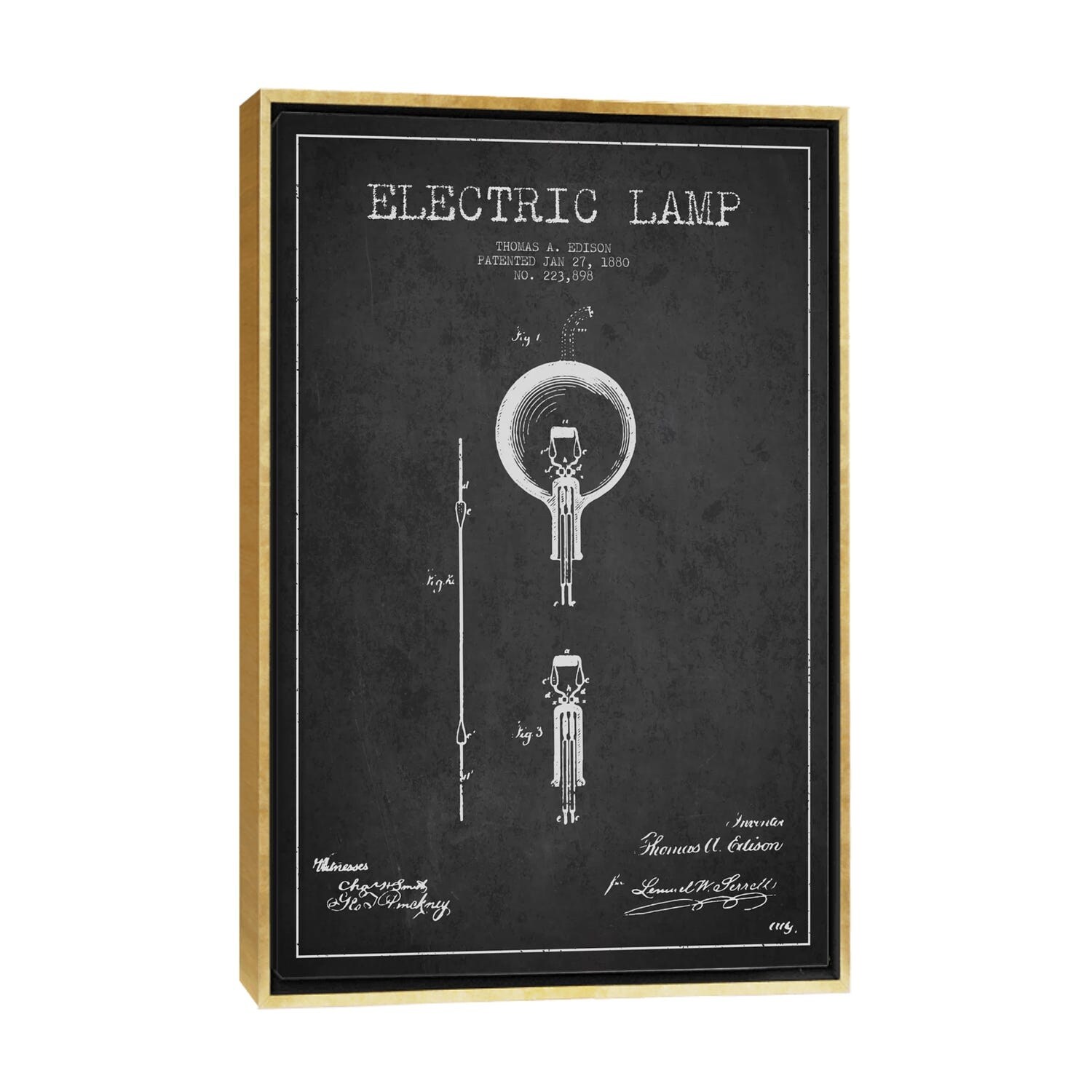 iCanvas "Electric Lamp Charcoal Patent Blueprint" by Aged Pixel Framed Canvas Print