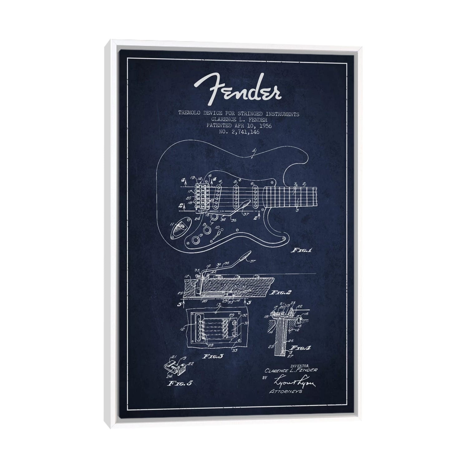 iCanvas "Tremolo Navy Blue Patent Blueprint" by Aged Pixel Framed Canvas Print