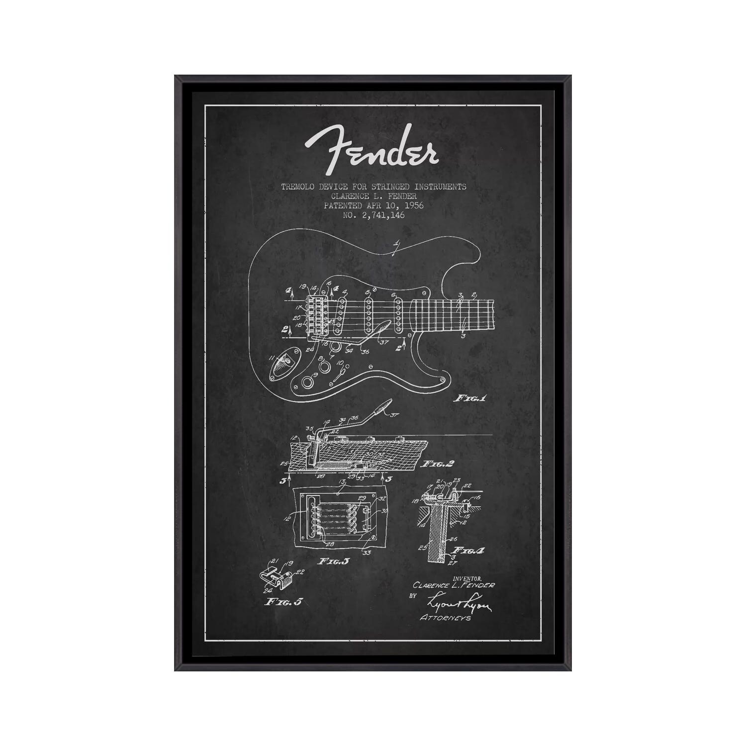 iCanvas "Guitar Charcoal Patent Blueprint" by Aged Pixel Framed Canvas Print