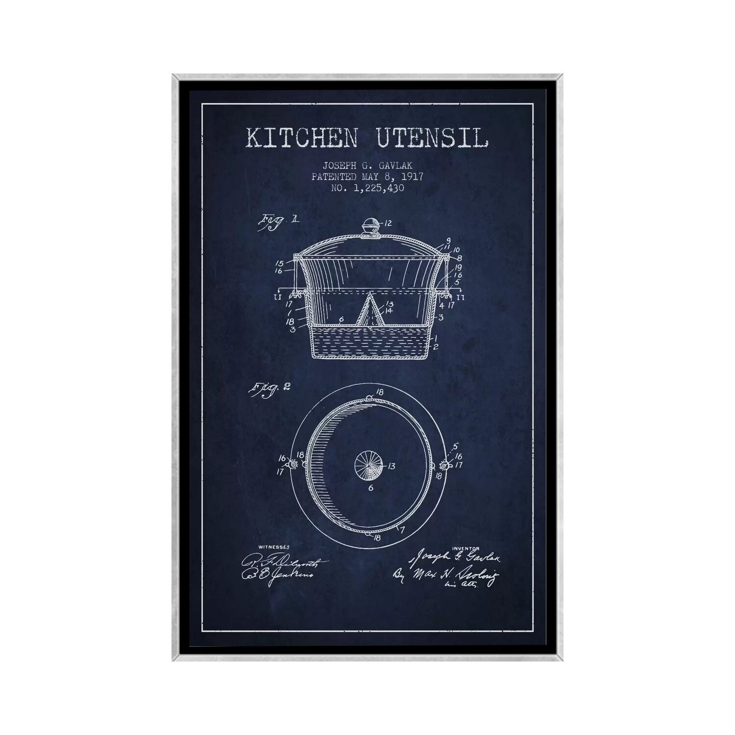 iCanvas "Kitchen Utensil Navy Blue Patent Blueprint" by Aged Pixel Framed