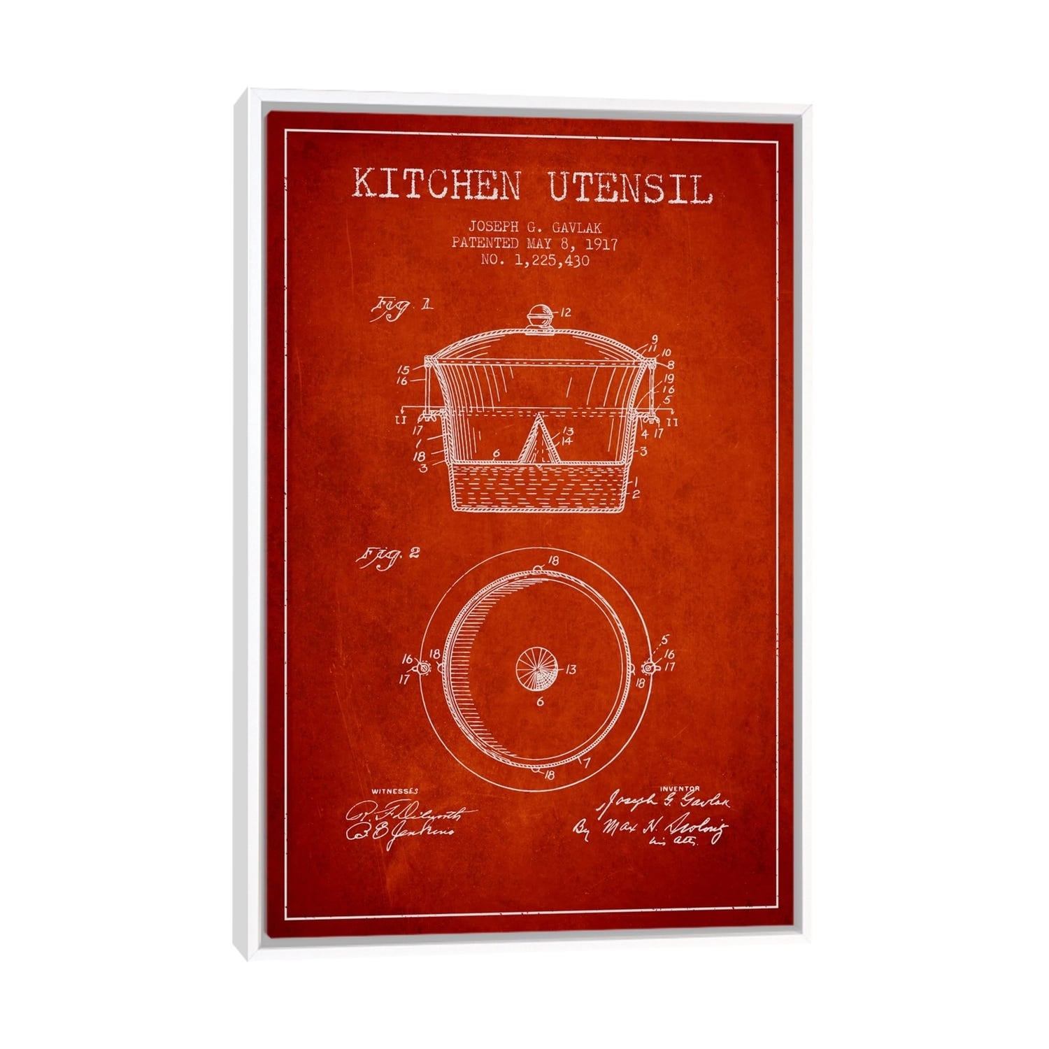 iCanvas "Kitchen Utensil Red Patent Blueprint" by Aged Pixel Framed Canvas Print
