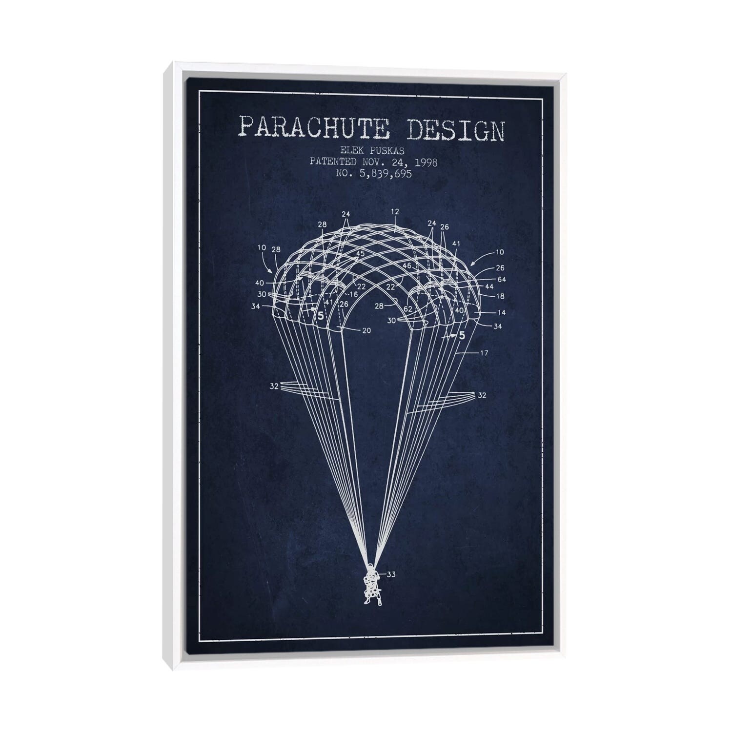 iCanvas "Parachute Design Navy Blue Patent Blueprint" by Aged Pixel Framed Canvas Print