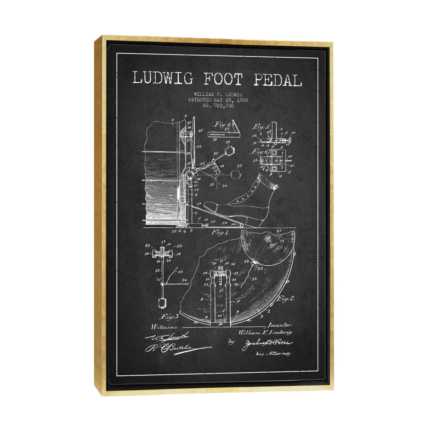 iCanvas "Ludwig Pedal Charcoal Patent Blueprint" by Aged Pixel Framed Canvas Print