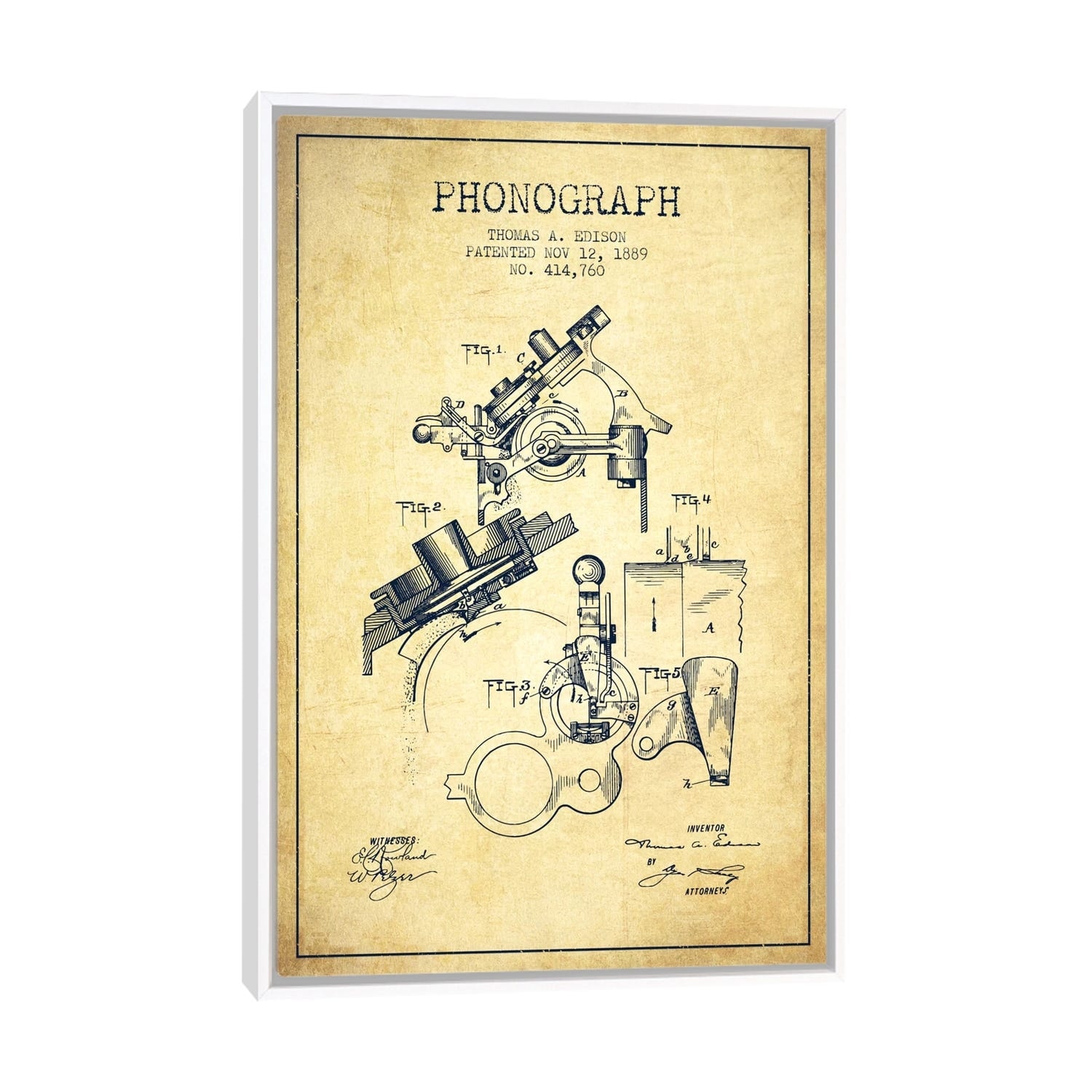 iCanvas "Phonograph Vintage Patent Blueprint" by Aged Pixel Framed Canvas Print
