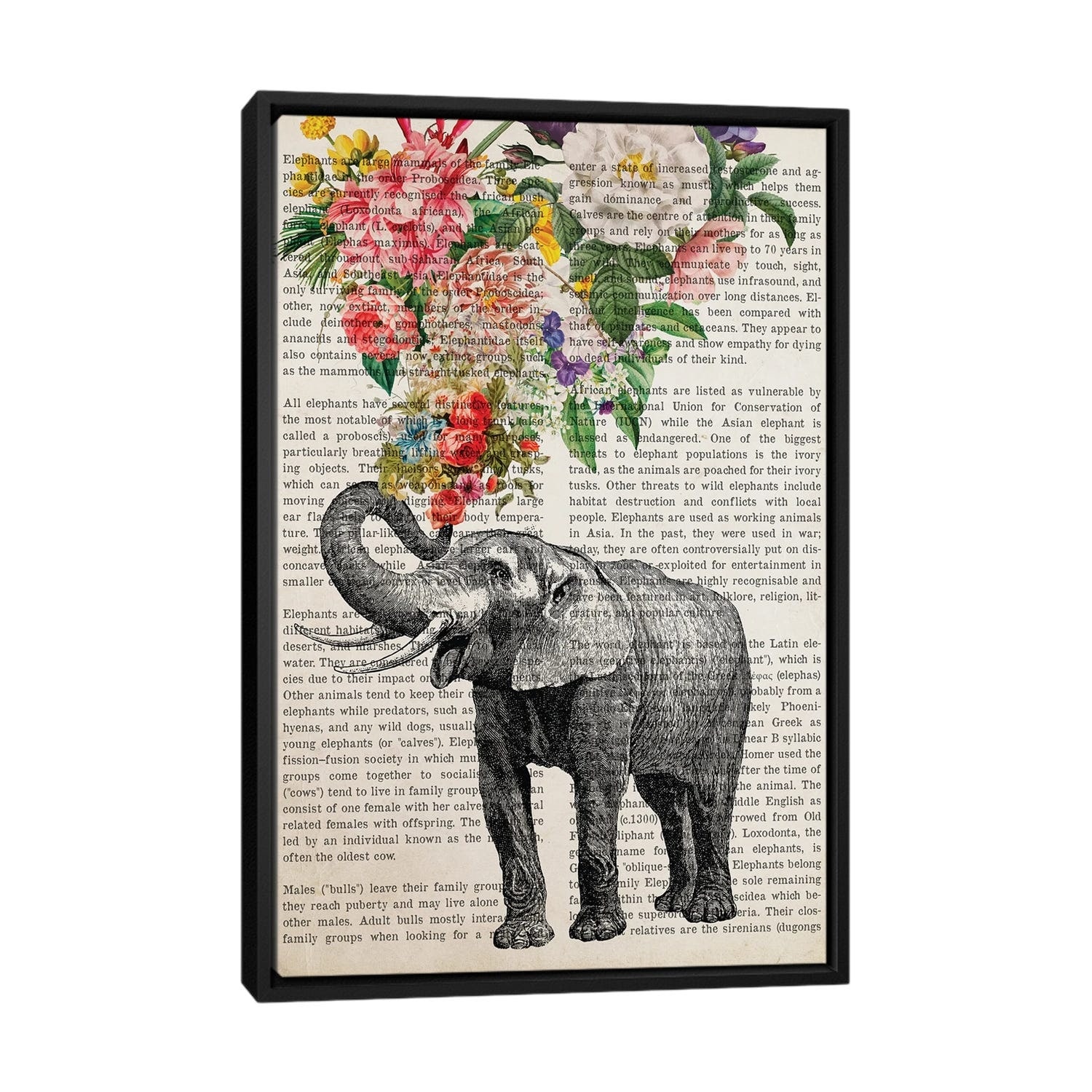 iCanvas "Elephant With Flowers Prints" by Aged Pixel Framed Canvas Print