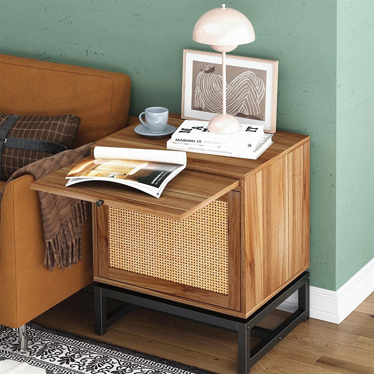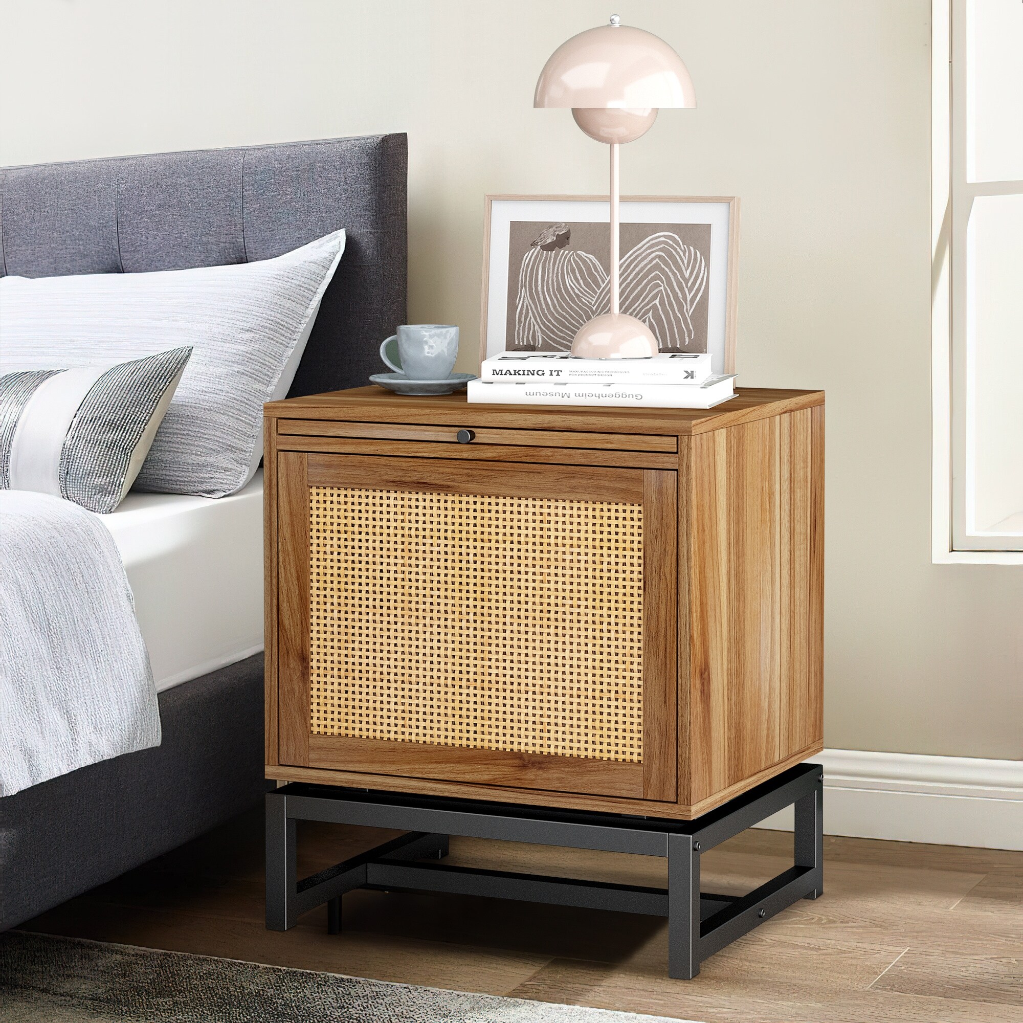 Natural Nightstand with 1 Rattan Door,With a Adjustable Pull Plate