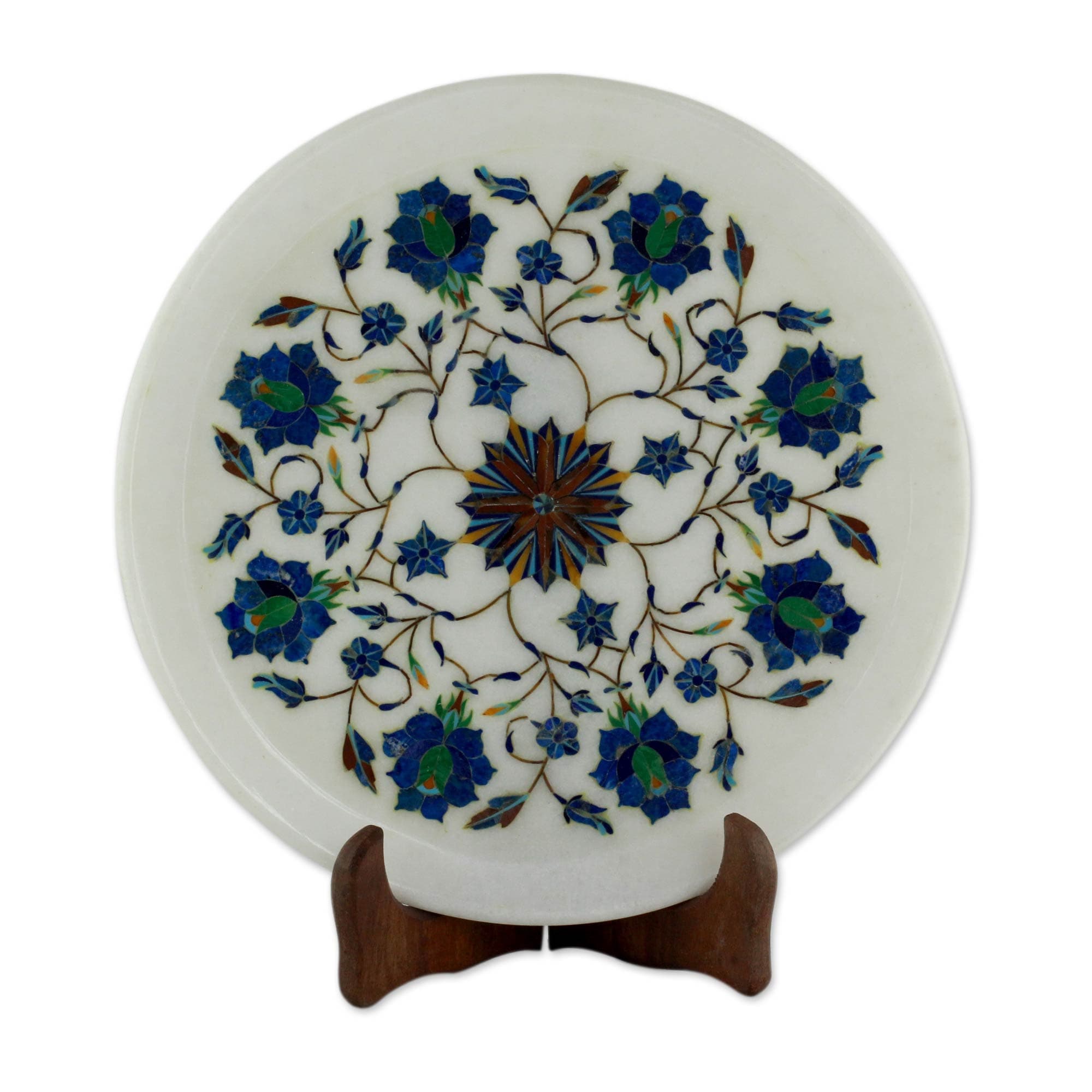 Novica Handmade Floral Burst Marble Inlay Decorative Plate