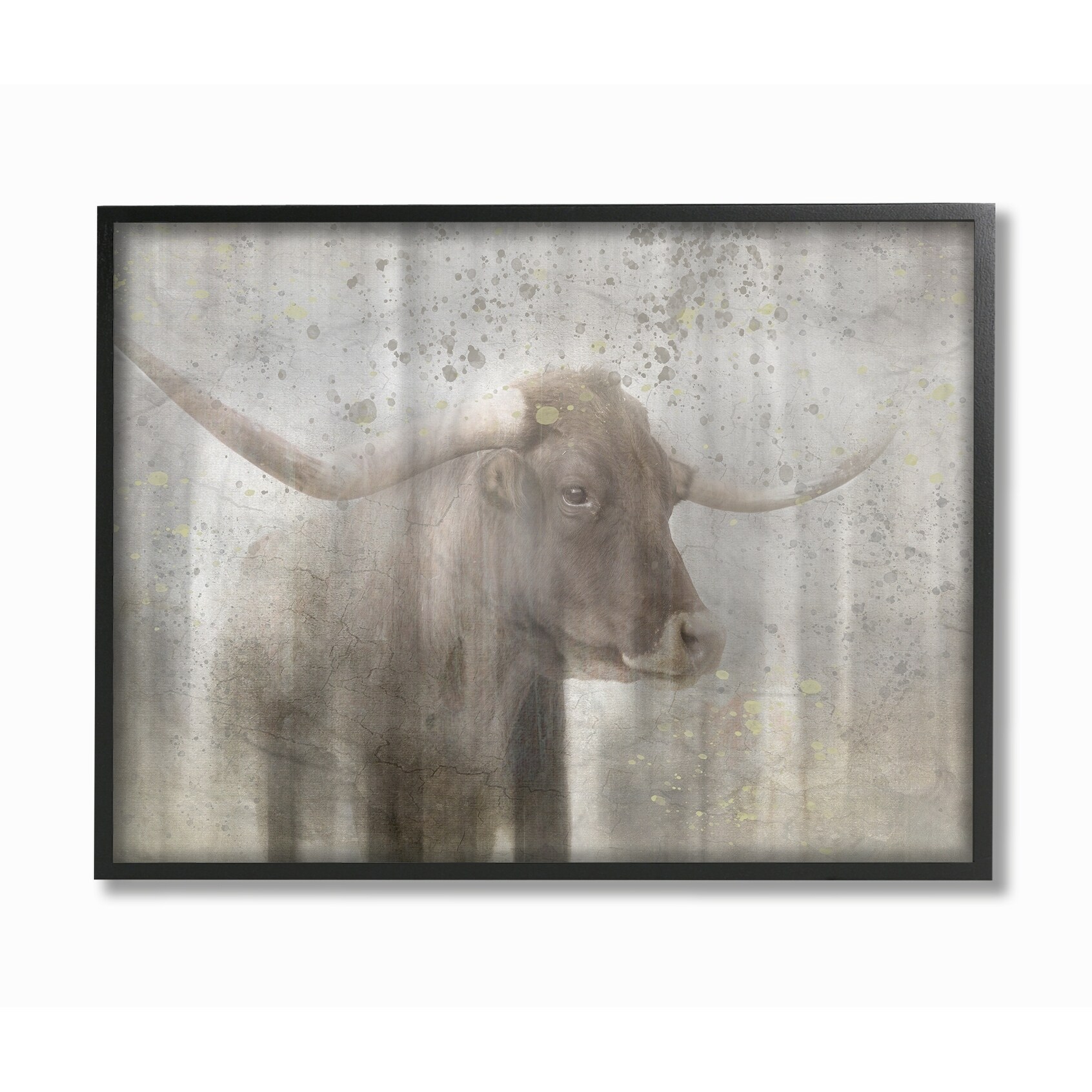 The Stupell Home Decor Washed Out Distressed Surface Rustic Bull Framed Art, 11 x 14, Proudly Made in USA - Multi-Color