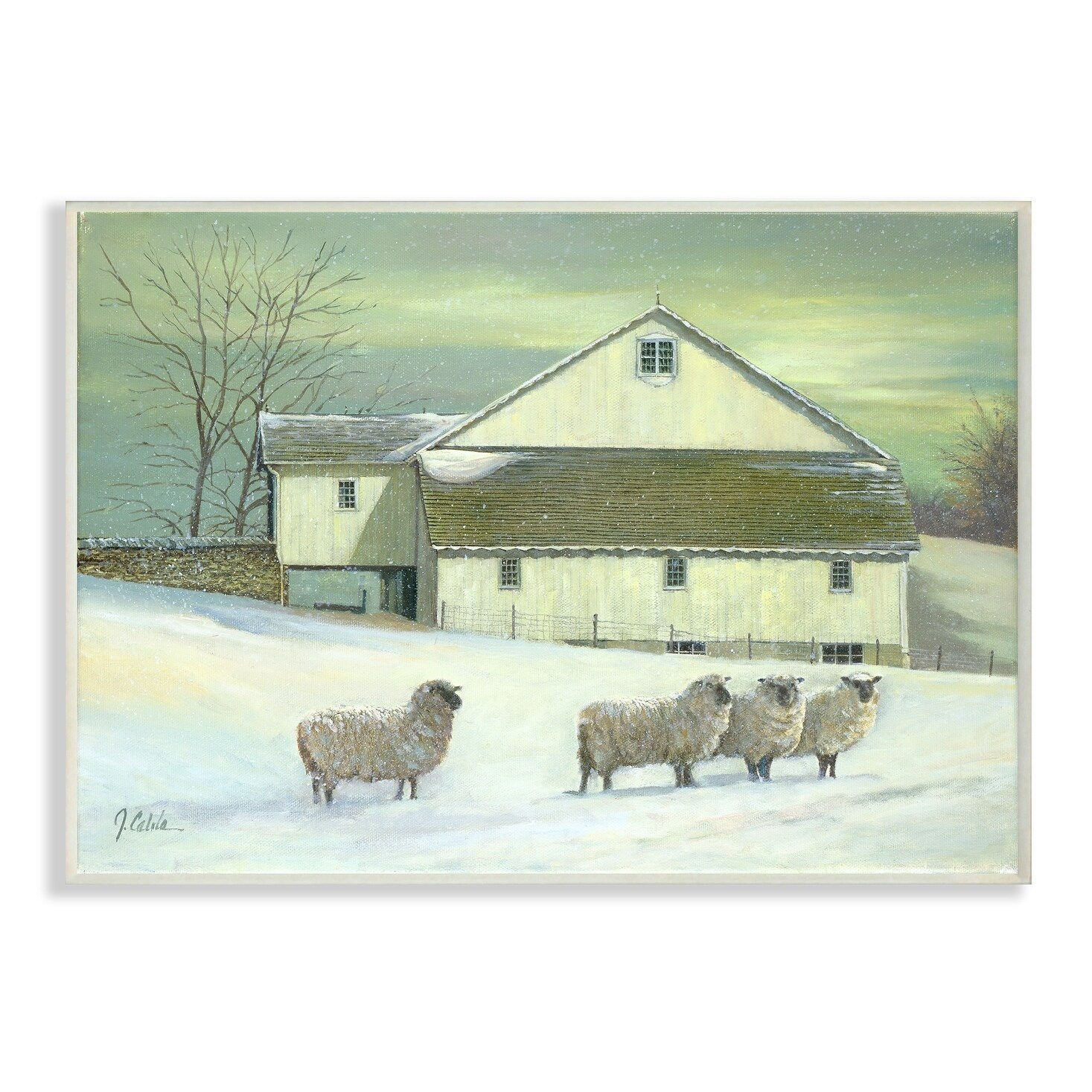 The Stupell Home Decor Sheep in Front of the Farmhouse Green Toned Wall Plaque Art, 10 x 15, Proudly Made in USA